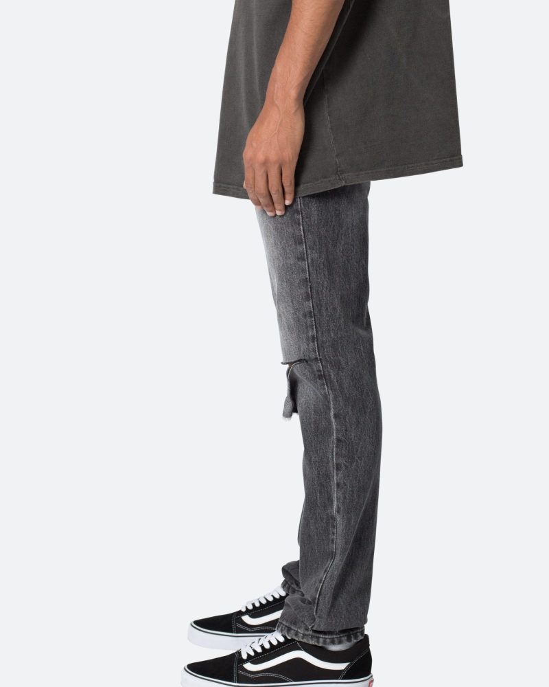 the D530 Zipper Straight Denim is designed with our new D fit which is relaxed throughout with an extended inseam for stacking and features a medium vintage wash. distressing details at the knees. and finished with zipper details at the thigh.