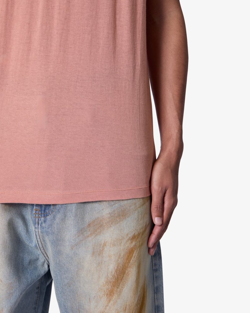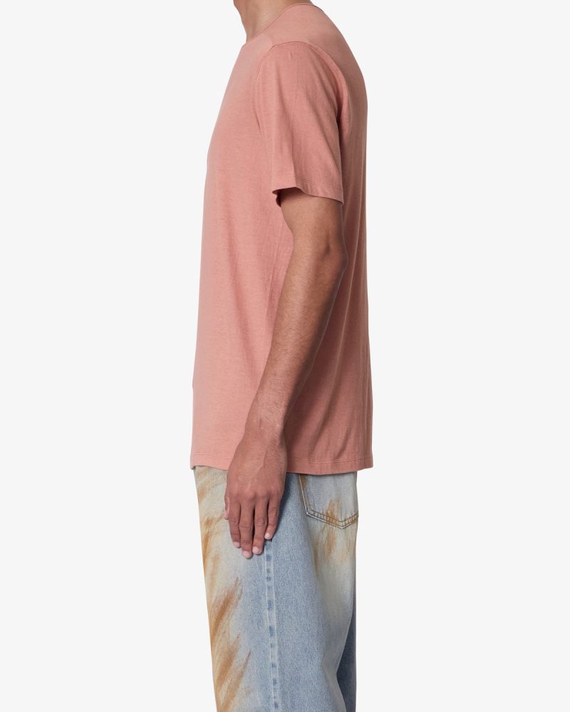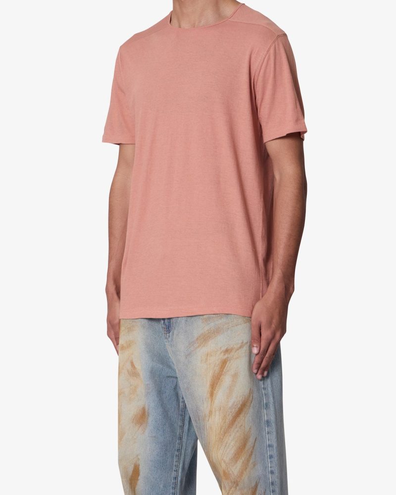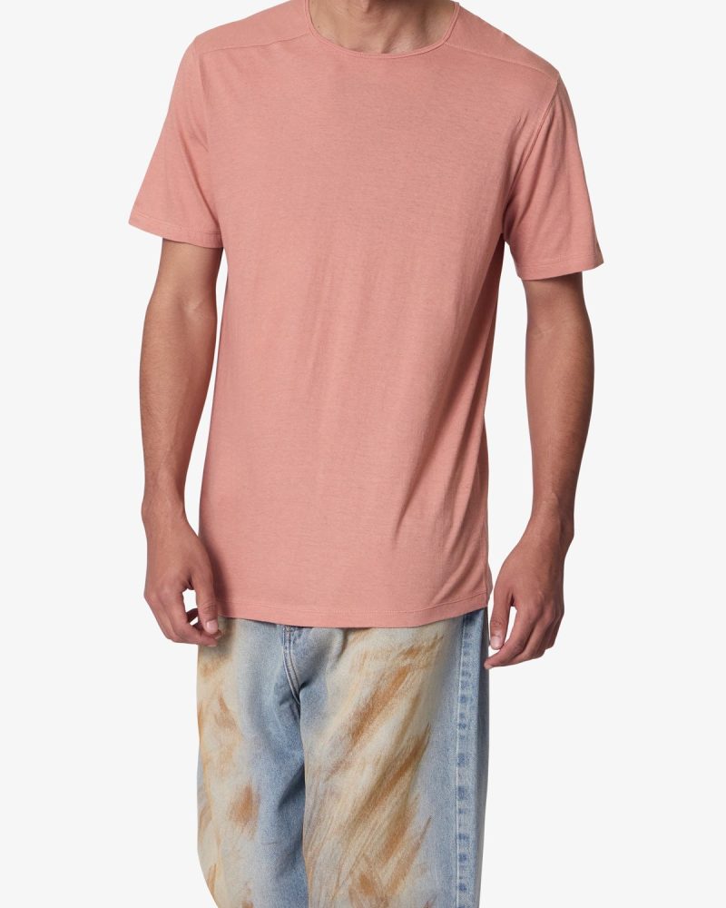 the Sheer Crewneck Tee features a flat hem line and a standard shoulder seam for a more streamlined fit. constructed from a washed sheer cotton fabric. and finished with an traditional fit.