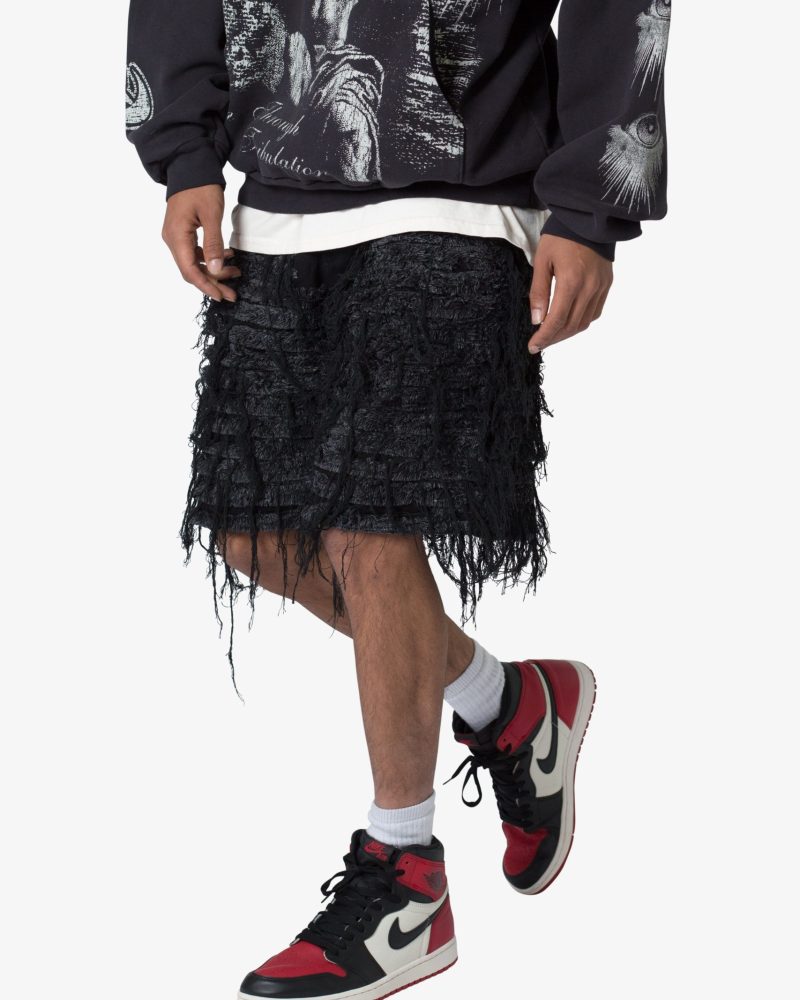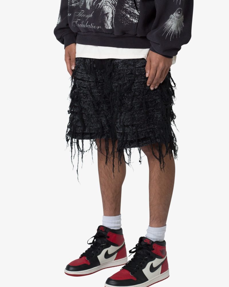 Allover Frayed Denim Shorts – Black