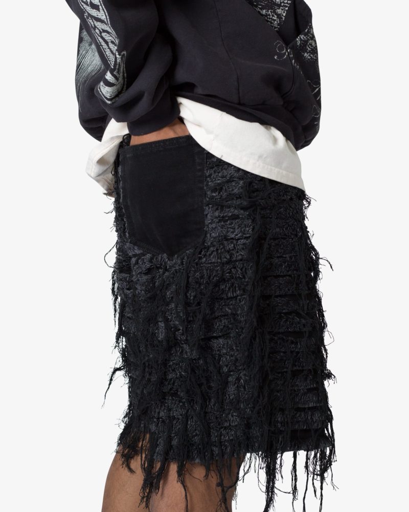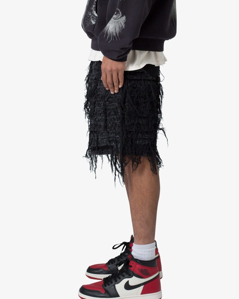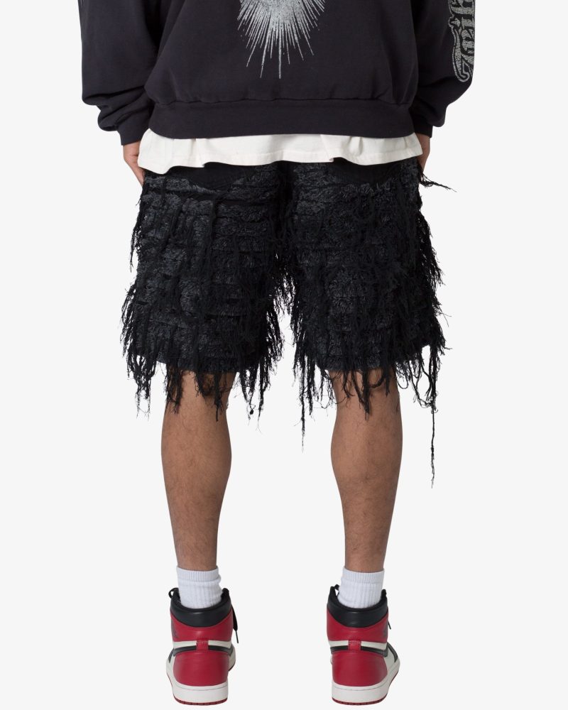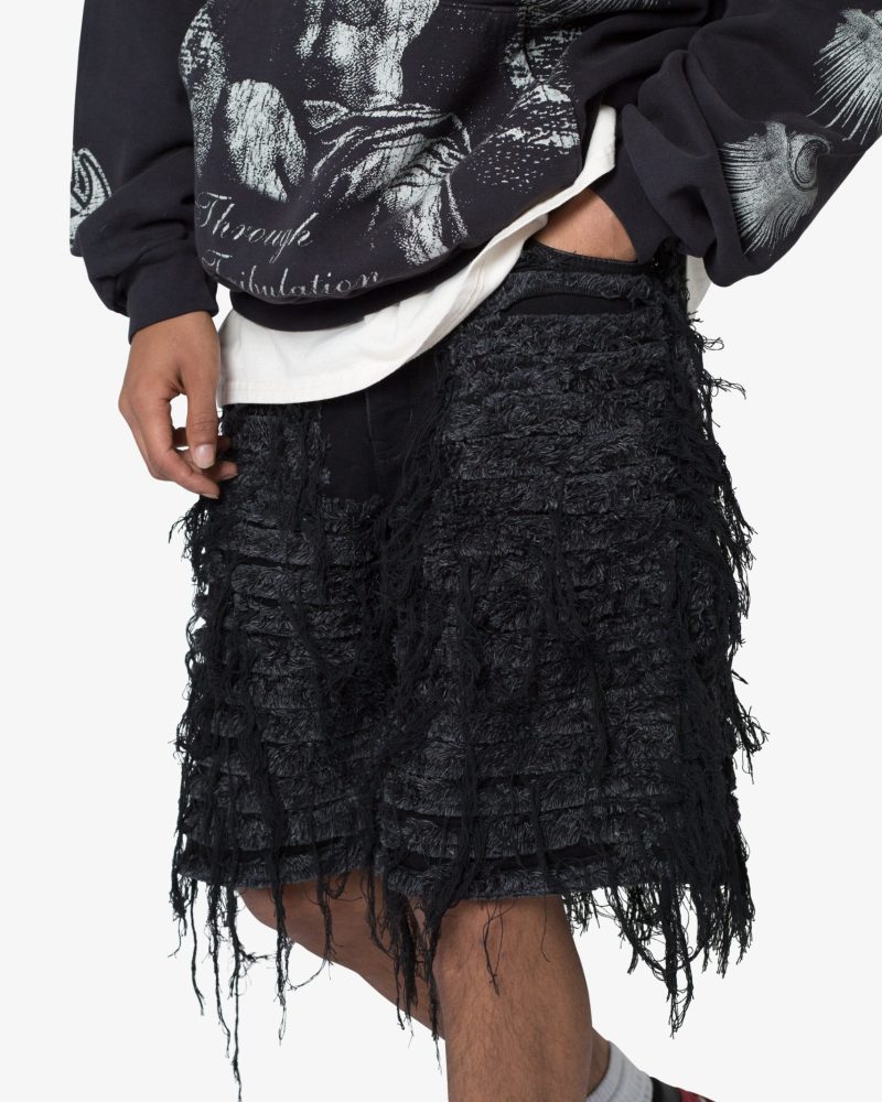 Allover Frayed Denim Shorts - Black