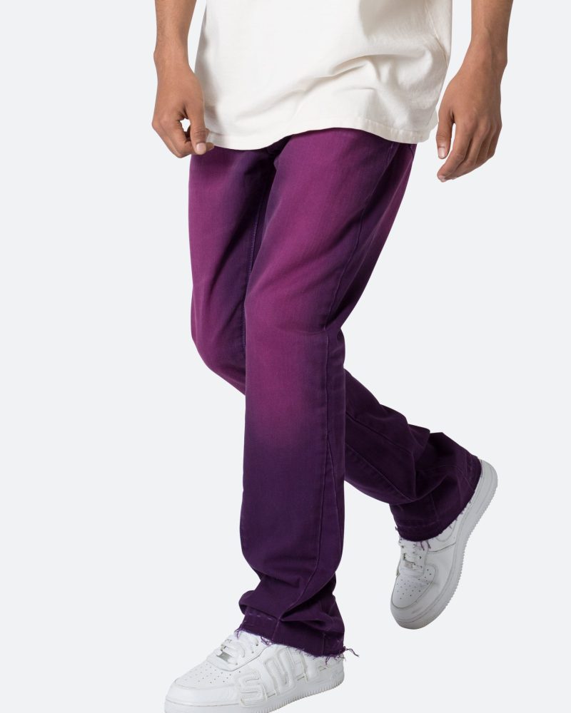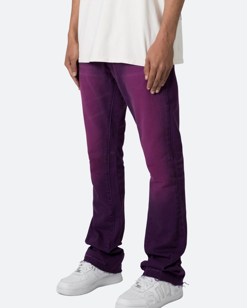 the B512 Flare Denim are designed with our new B fit. which is slim through the thigh and features a slight flare at the leg opening and is constructed from a purple washed black denim. panelling at the inseam and outseam from a self fabric for a slight flare and finished with a deconstructed hem.