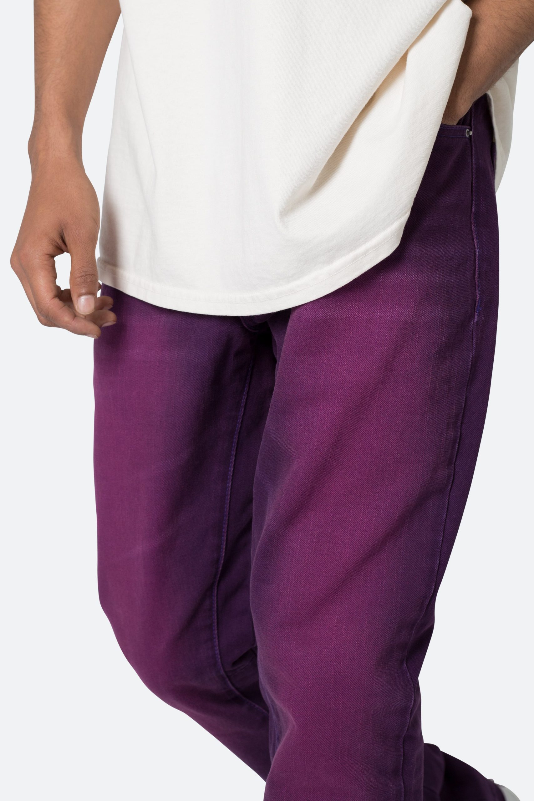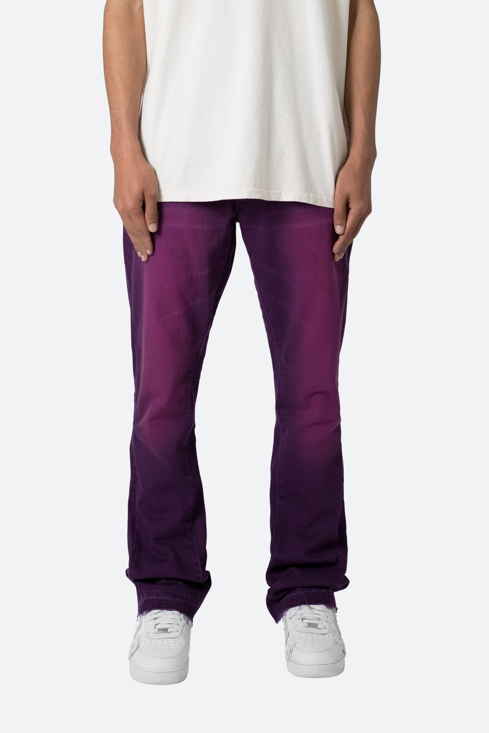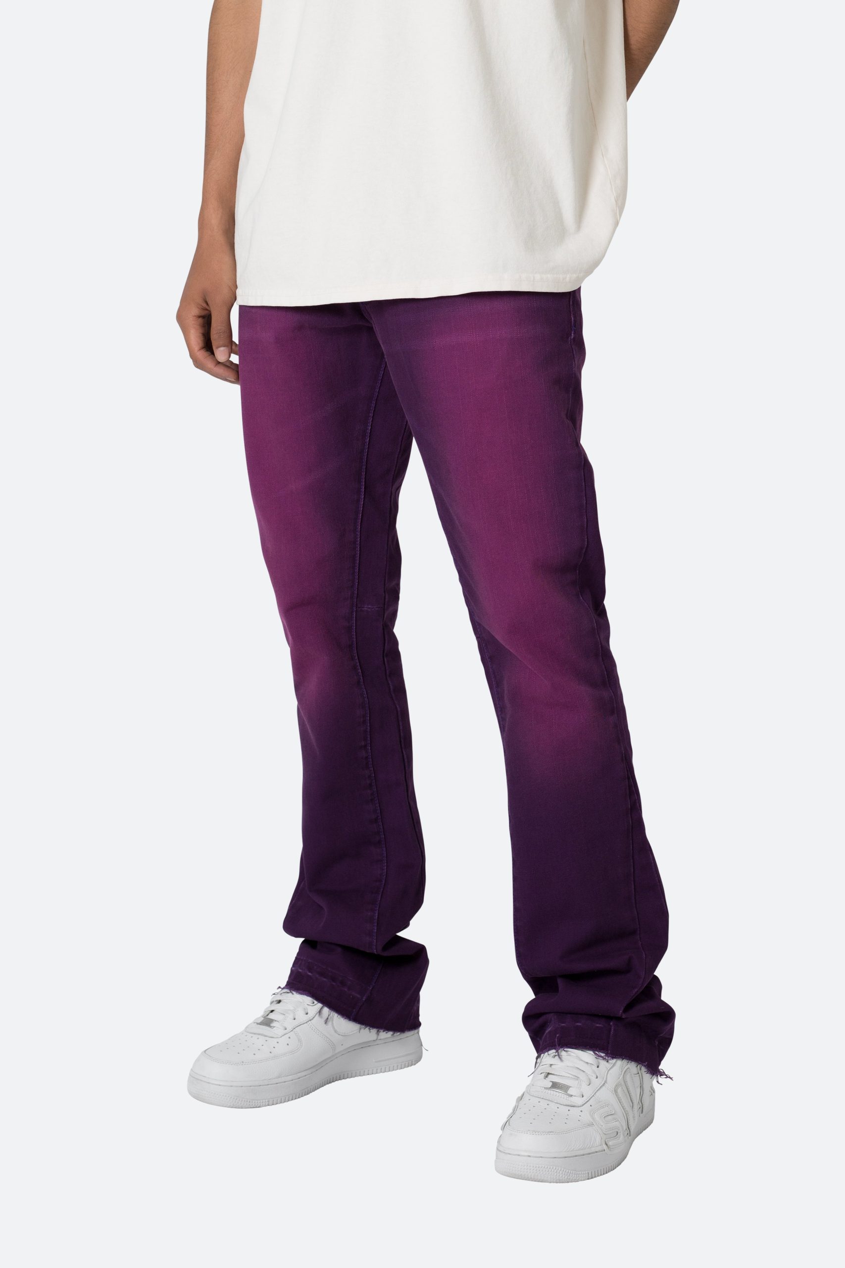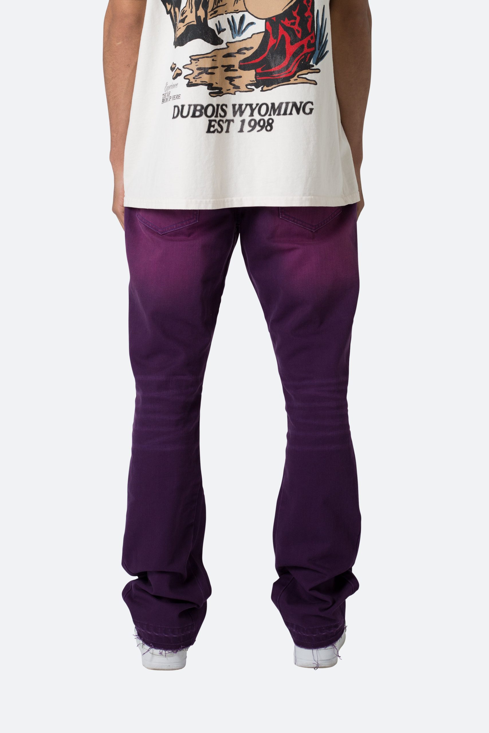 the B512 Flare Denim are designed with our new B fit. which is slim through the thigh and features a slight flare at the leg opening and is constructed from a purple washed black denim. panelling at the inseam and outseam from a self fabric for a slight flare and finished with a deconstructed hem.
