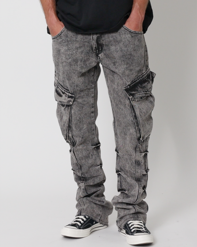 B647 Cargo Seamed Flare Denim - Grey
