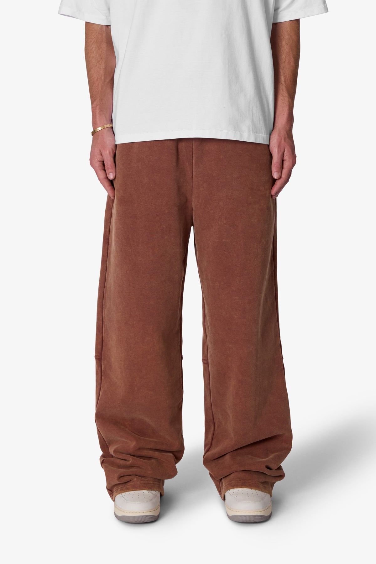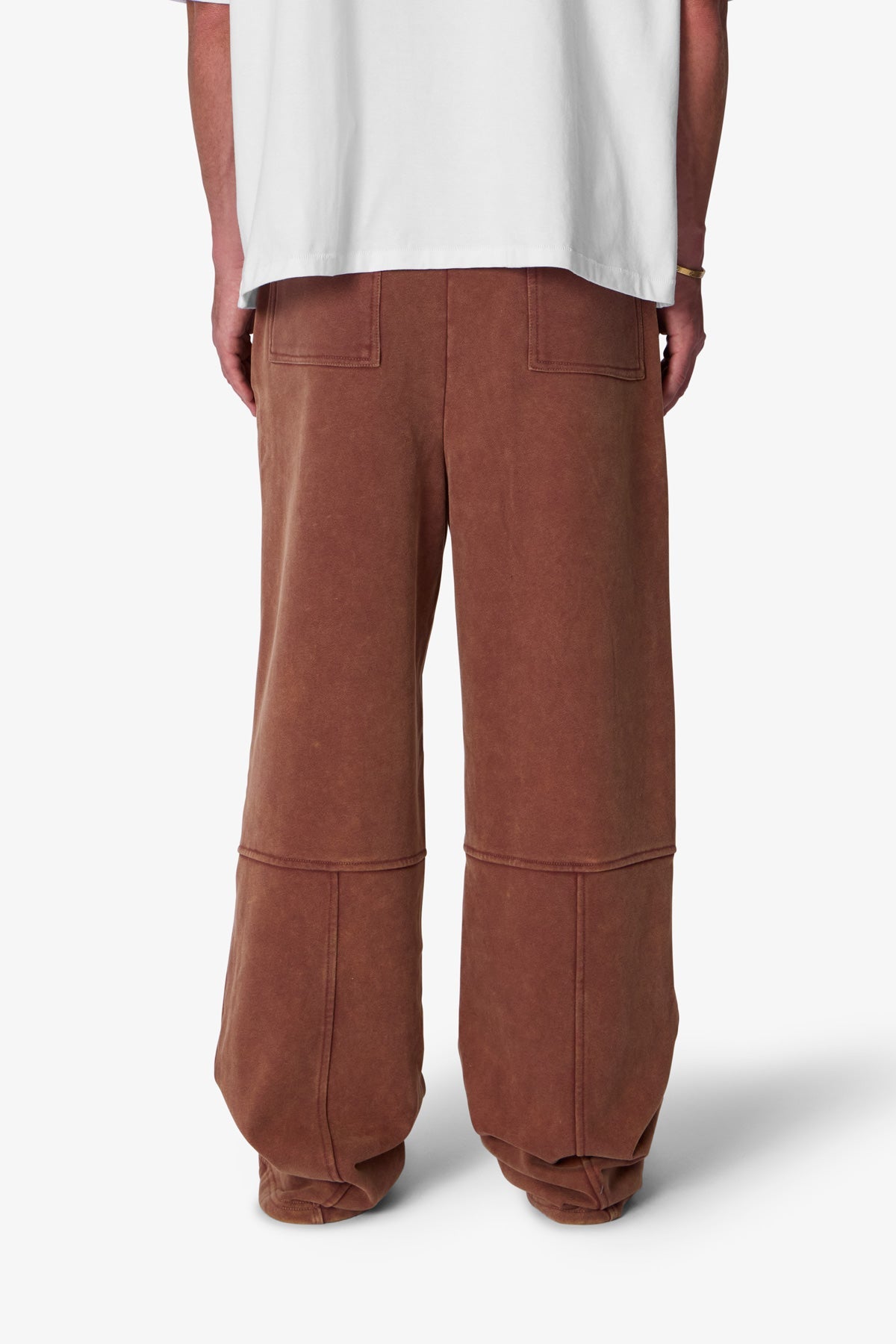 the Boxing Oversized Sweatpants are designed with a baggy fit throughout. featuring an elasticized self waist. paneling on the back of the leg opening. raw hem at the leg opening. and finished in both a washed and brushed fleece fabric.