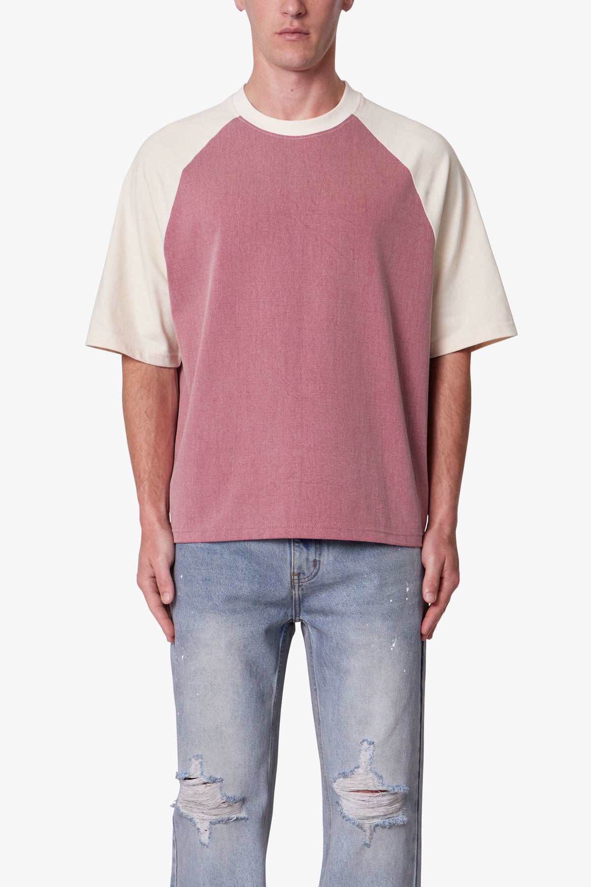 Contrast Raglan Tee - Burgundy/Off White