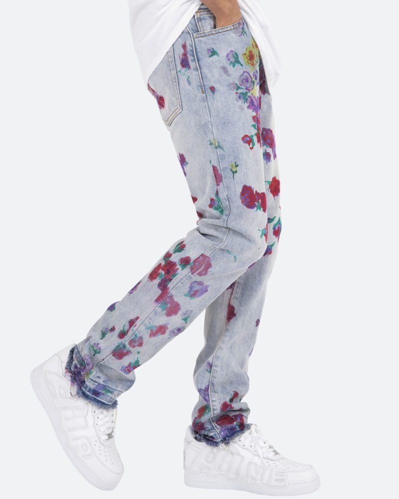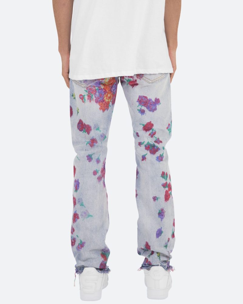 the D281 Floral Denim is designed with our new D fit which is relaxed throughout with an extended inseam for stacking and features a light wash finished with printed floral pattern throughout.