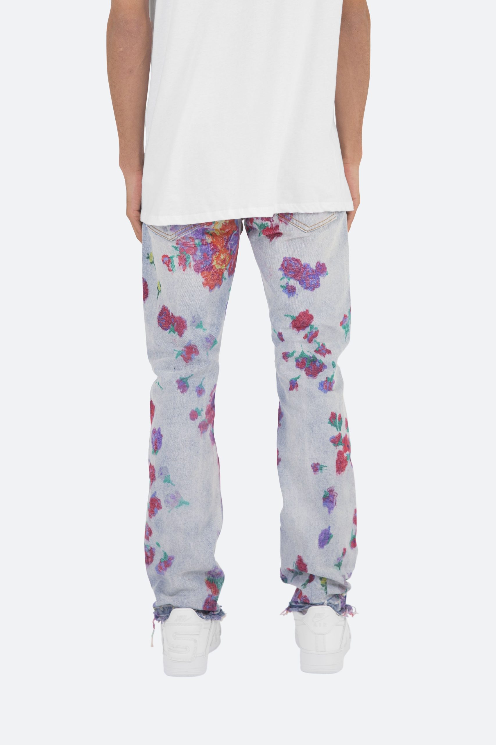 the D281 Floral Denim is designed with our new D fit which is relaxed throughout with an extended inseam for stacking and features a light wash finished with printed floral pattern throughout.