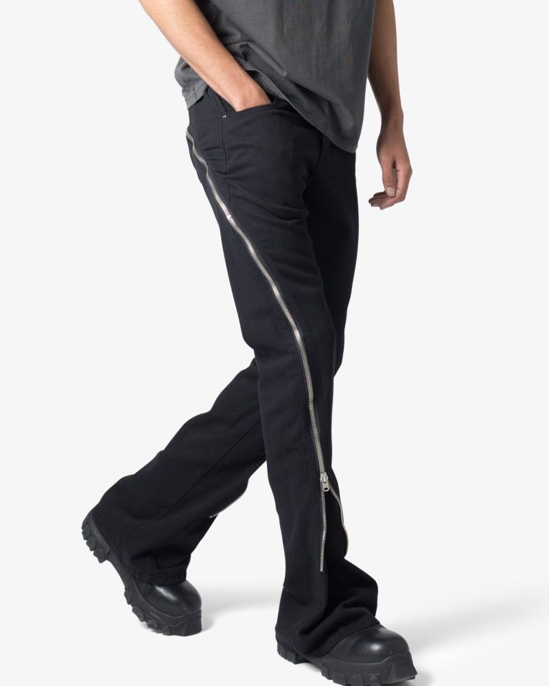 D519 Zipper Flare Denim – Black