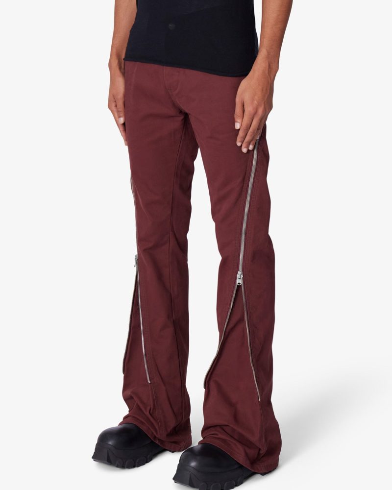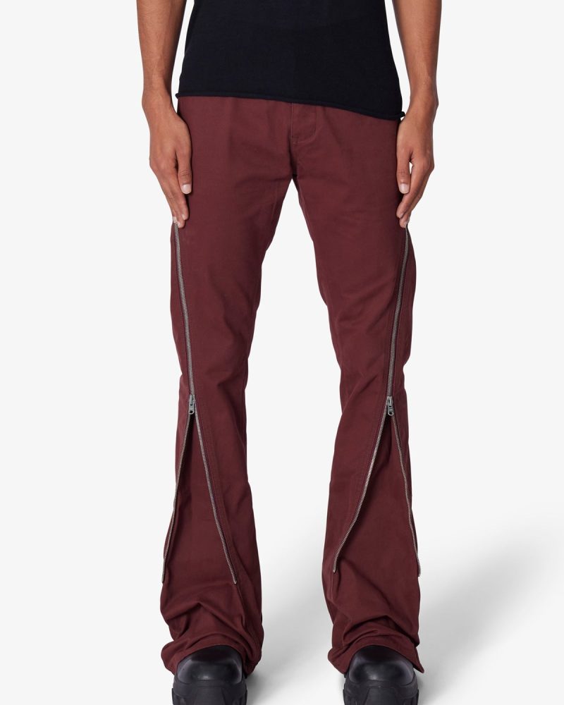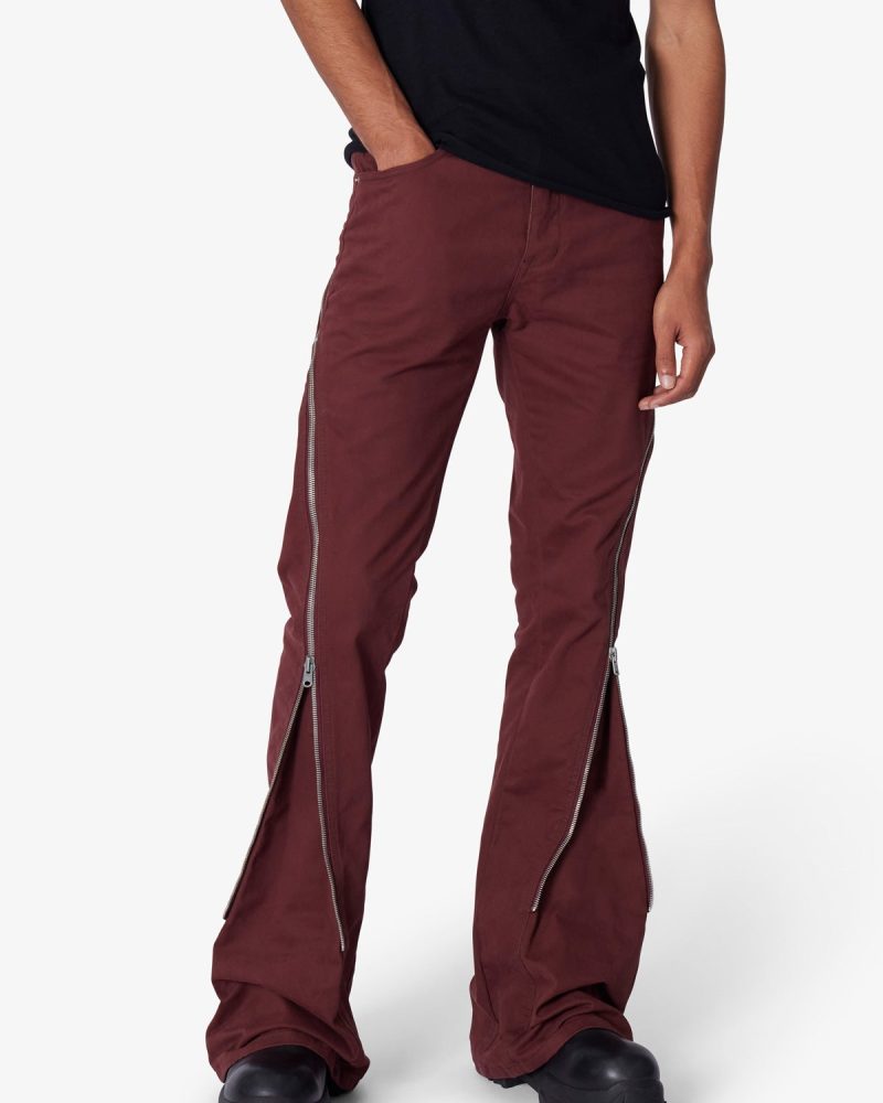 the D519 Zipper Flare Denim is designed with our D fit which is straight throughout. zipper detail extending from the thigh to the shin to provide a flare fit through the leg. and is constructed from black denim.