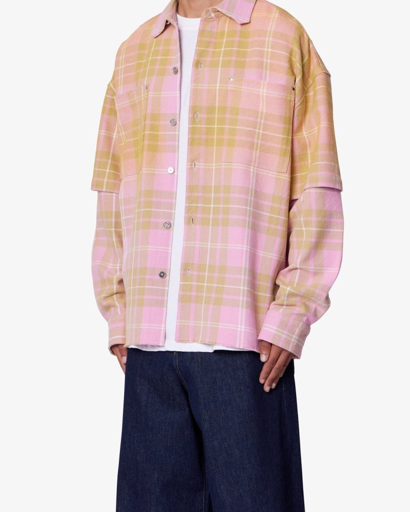 Dip Fade Flannel Shirt – Pink