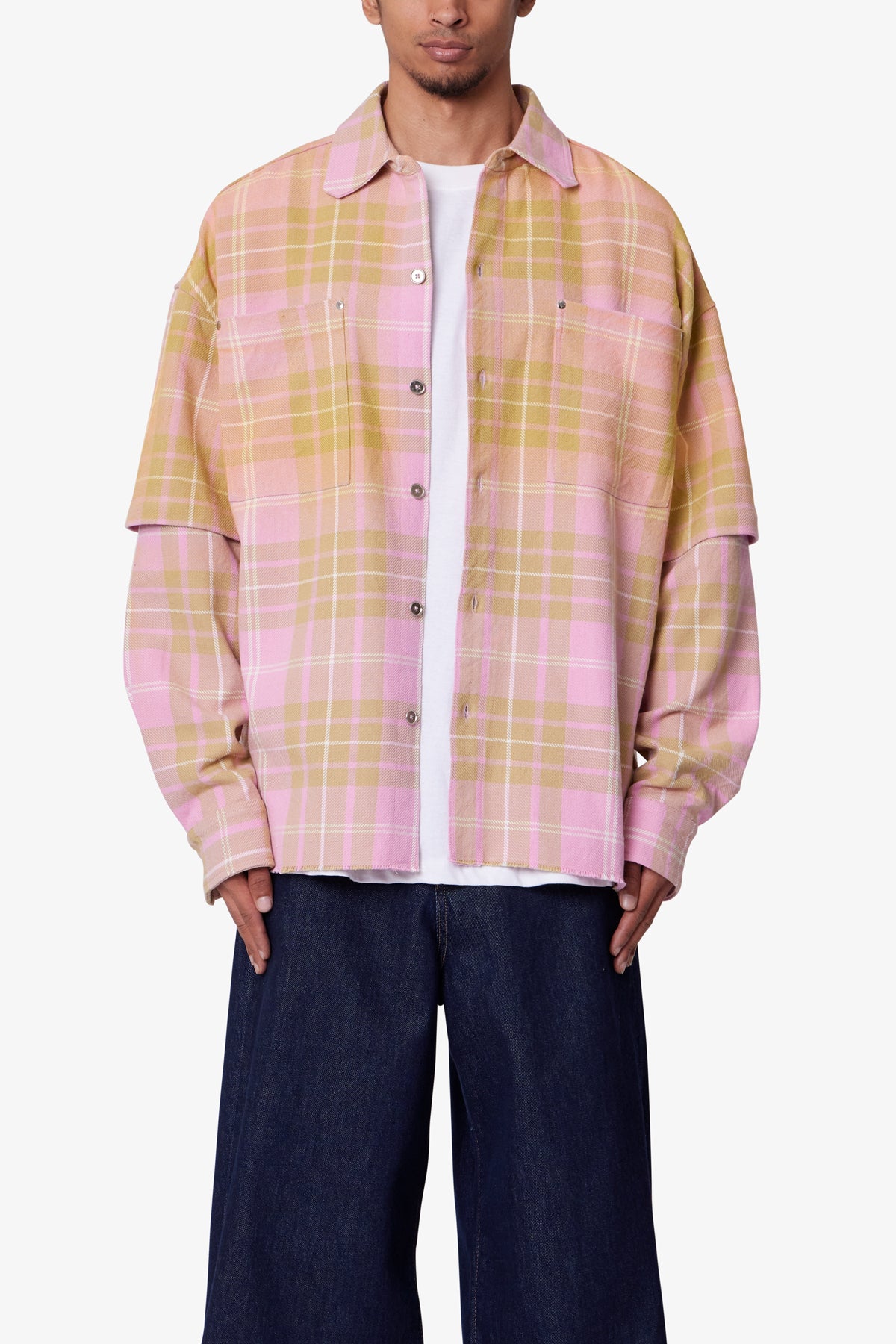 Dip Fade Flannel Shirt – Pink