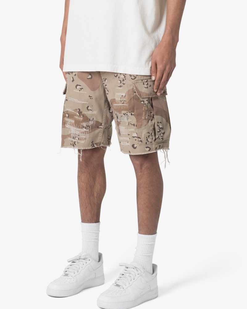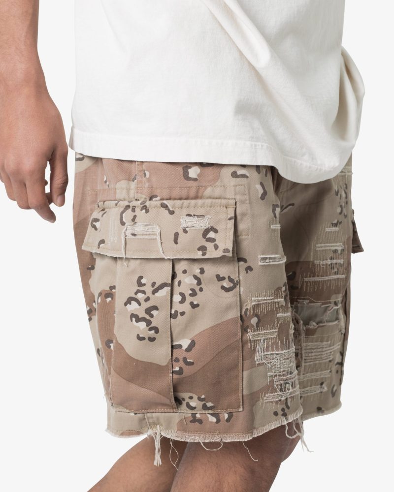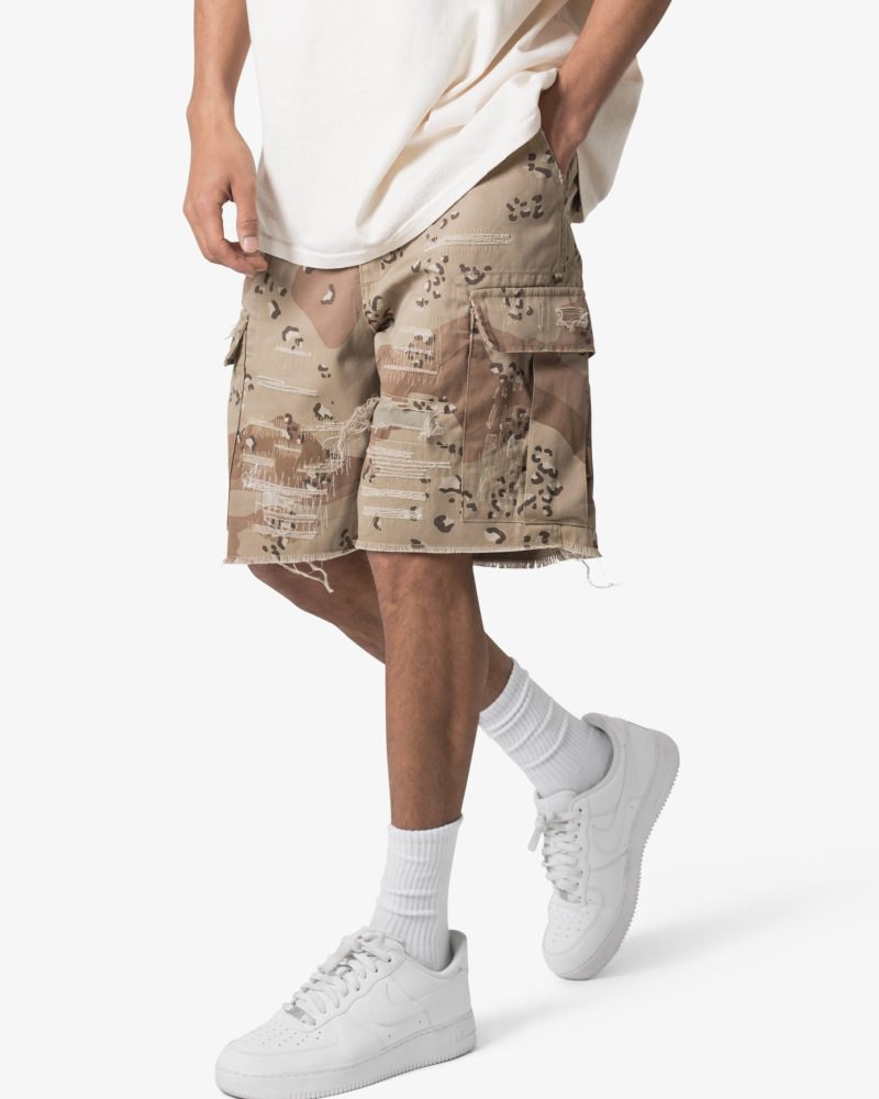 Distressed Cargo Shorts – Desert Camo