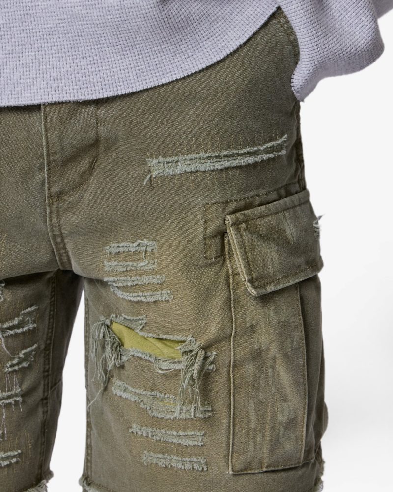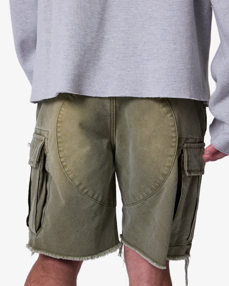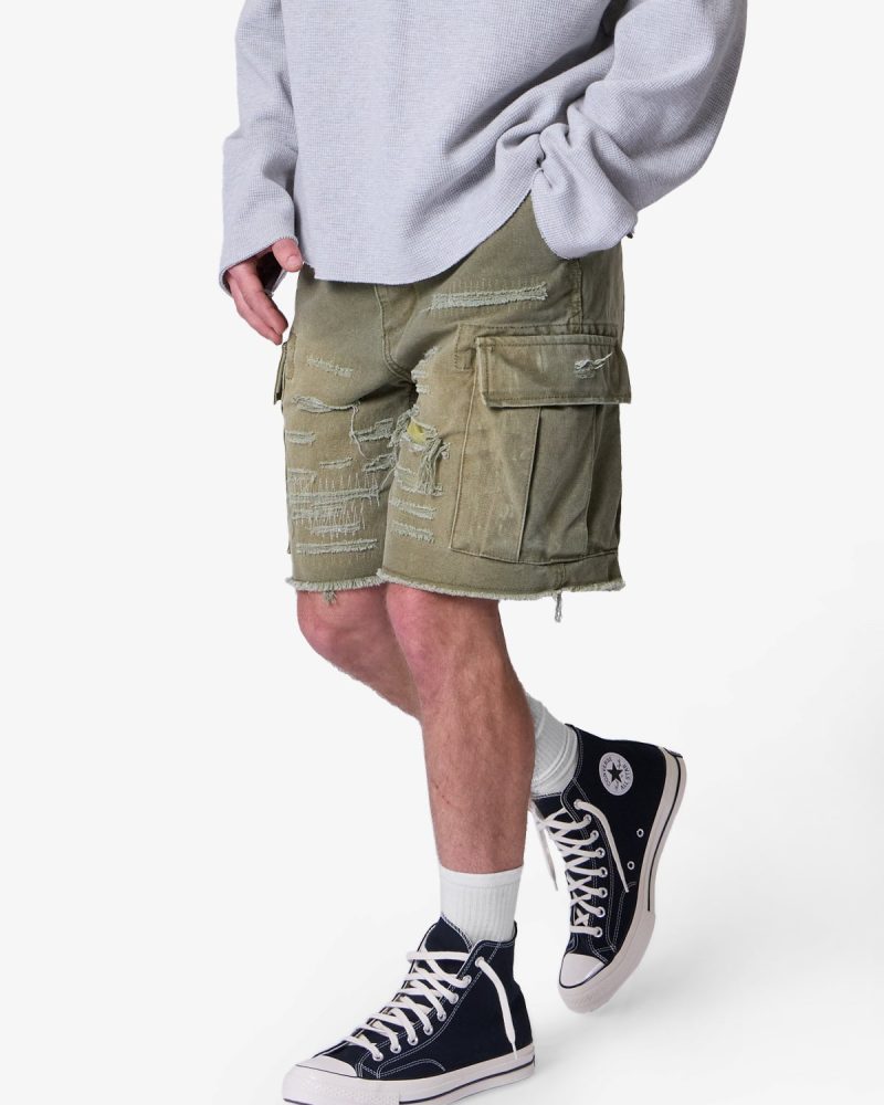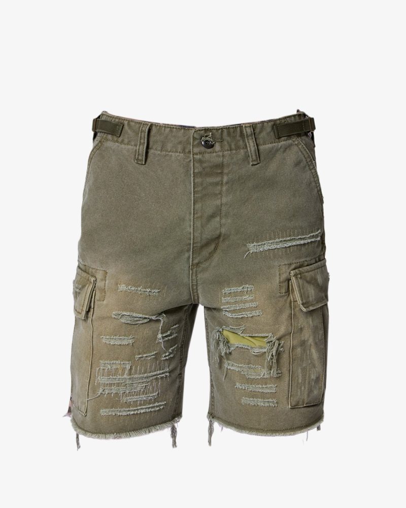 Distressed Cargo Shorts – Olive