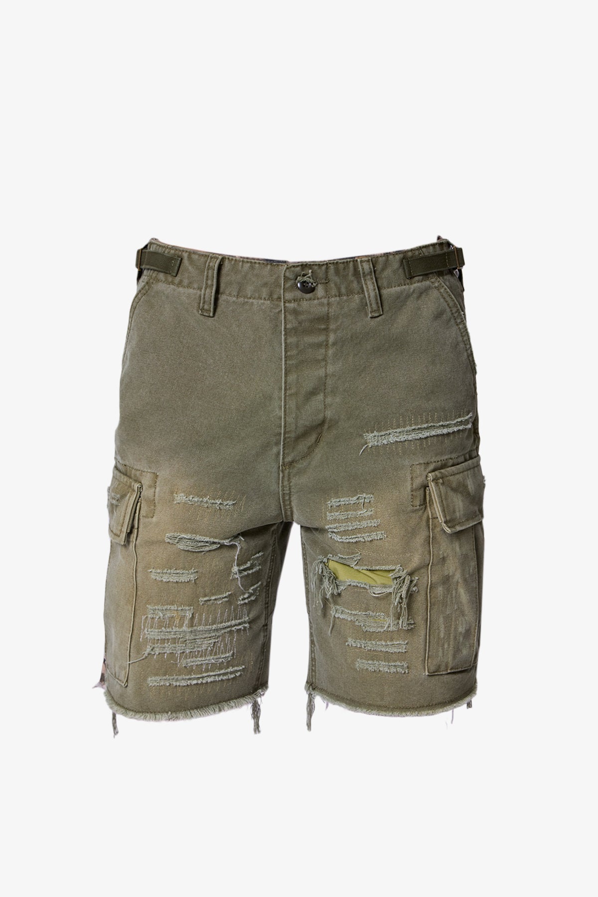 Distressed Cargo Shorts – Olive