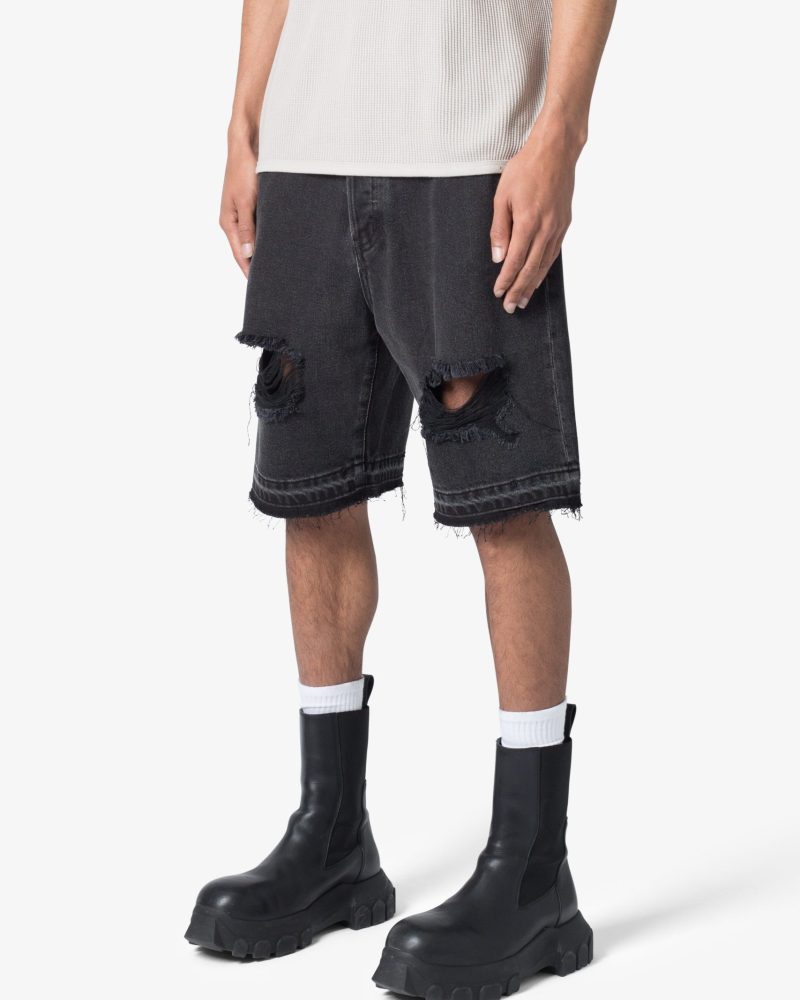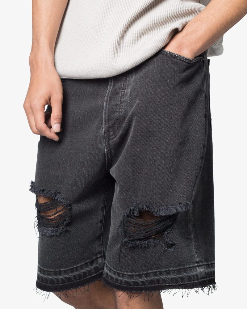 Distressed Denim Shorts - Black