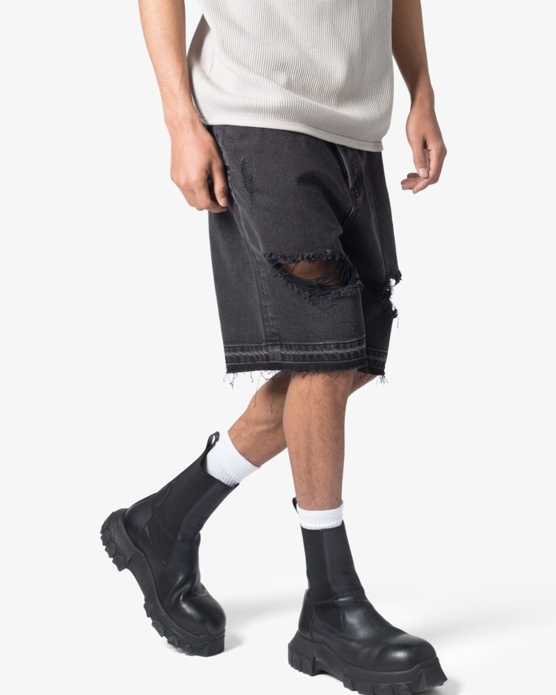 Distressed Denim Shorts – Black