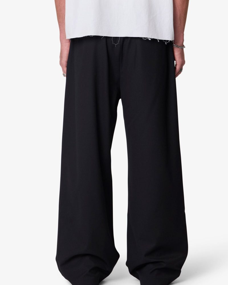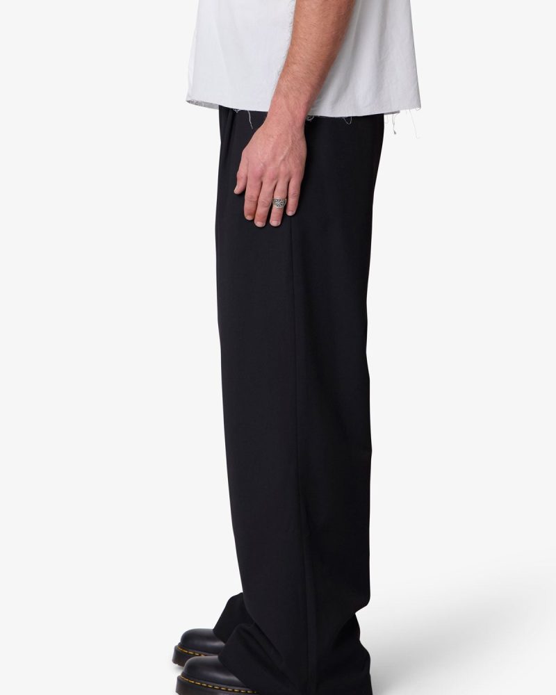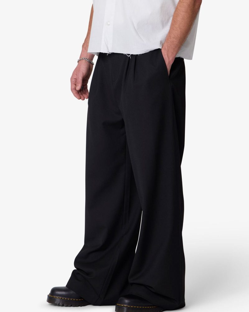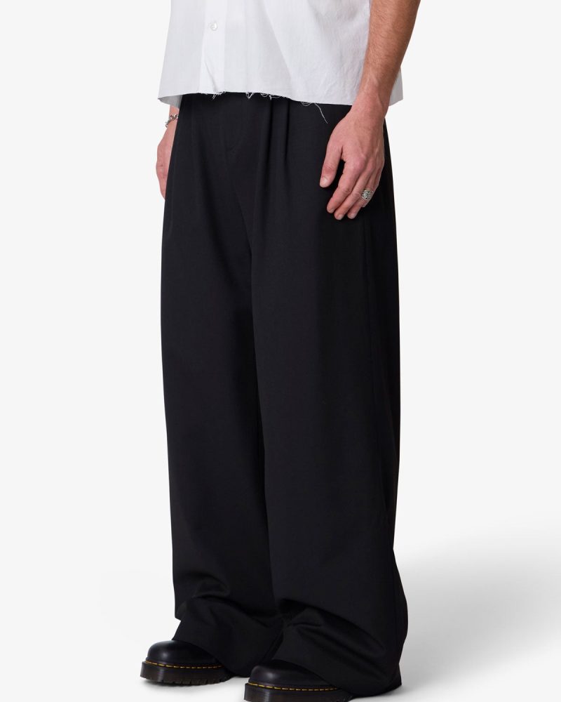 The Easy Pleated Trouser Pants feature a wide barrel leg fit and an elastic-back waistband for an easy. relaxed silhouette. Made from a cotton-blend fabric. the design includes two front pleats. a zip fly with French fly extension. and functional belt loops. Finished with back welt pockets.