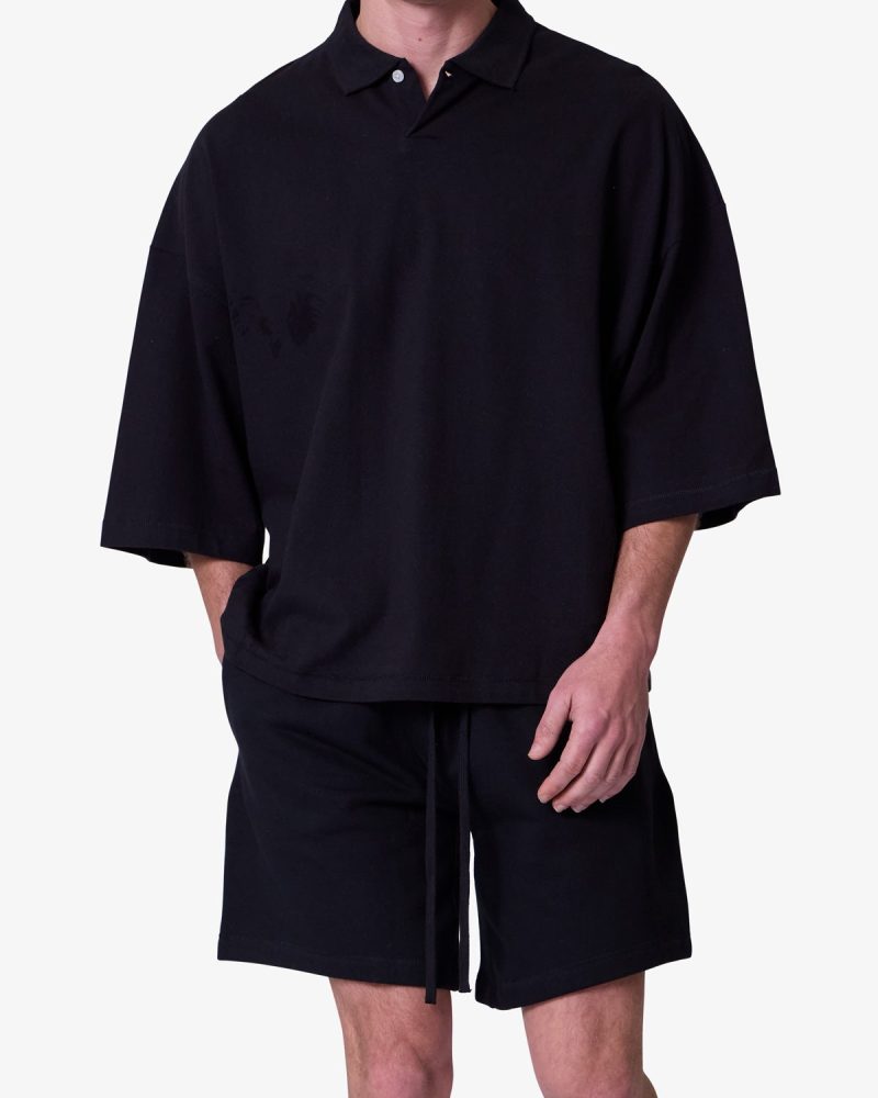 the Every Day S/S Polo is made from 100% cotton pique fabric. featuring extended sleeves with a drop shoulder construction. tonal ribbing at the collar and placket. and finished in a garment wash for improved hand feel.