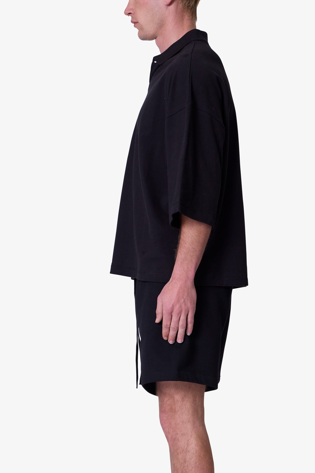 the Every Day S/S Polo is made from 100% cotton pique fabric. featuring extended sleeves with a drop shoulder construction. tonal ribbing at the collar and placket. and finished in a garment wash for improved hand feel.
