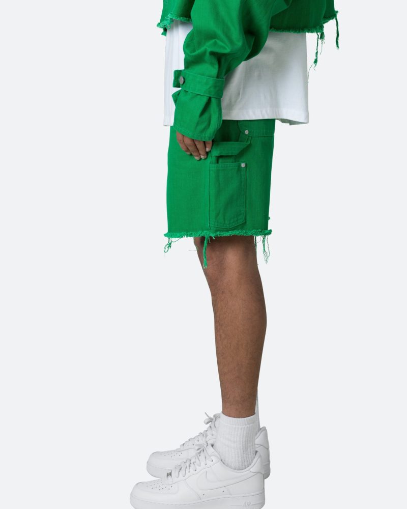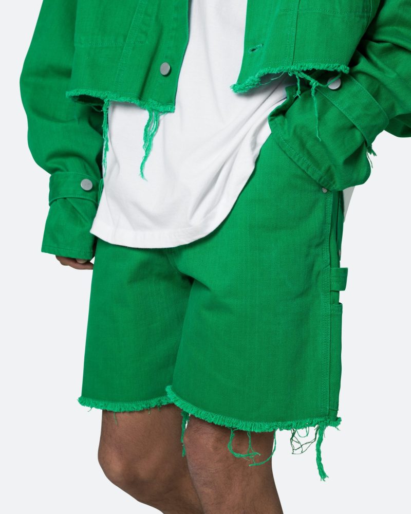 Frayed Denim Shorts - Green