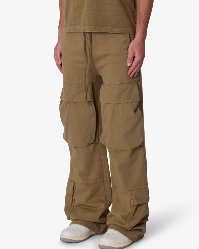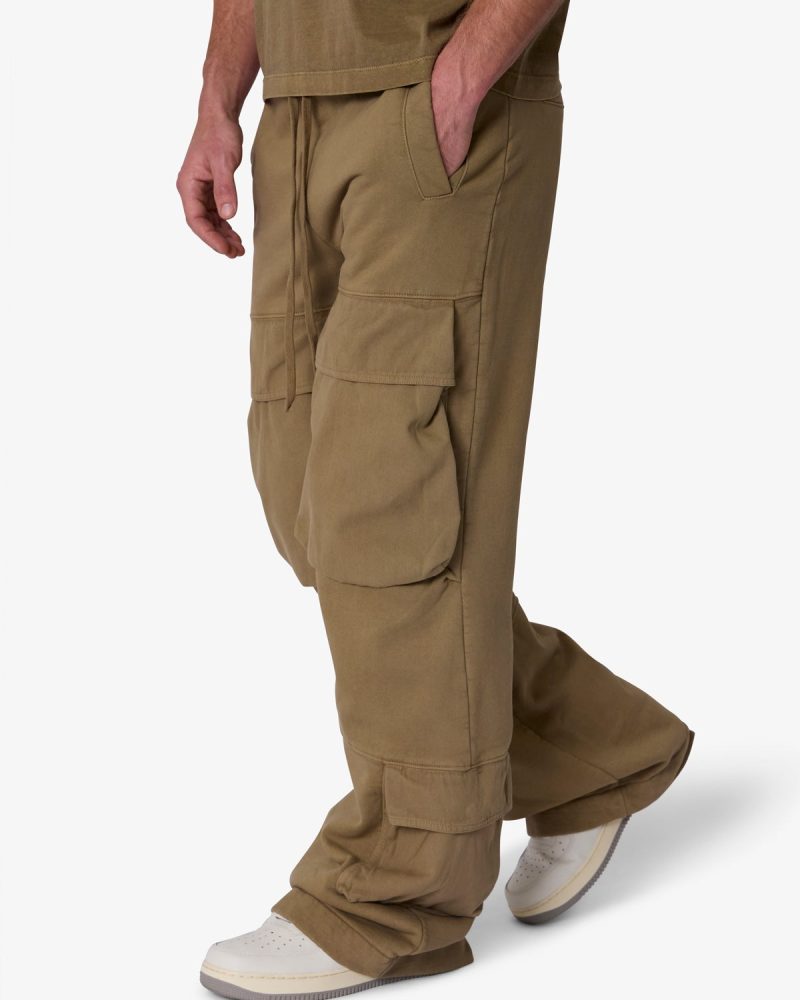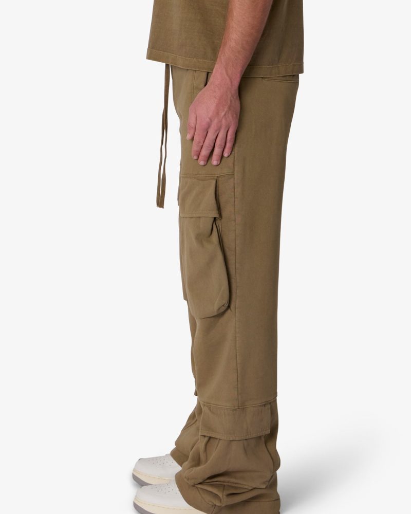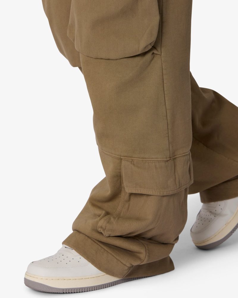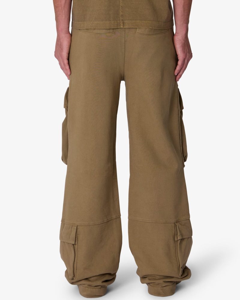 the Front Cargo Sweatpants are designed with a relaxed fit throughout with cargo pockets at the wearer’s front. welt pockets at the hip. internal drawcord. and finishing off with a garment wash.