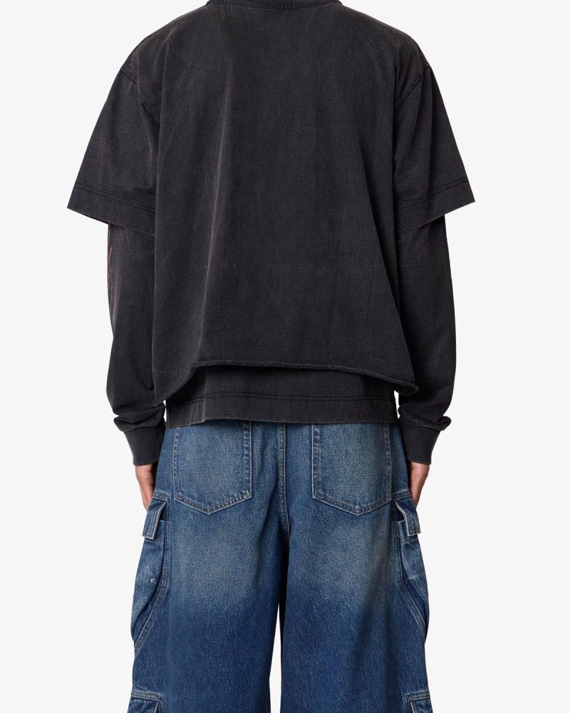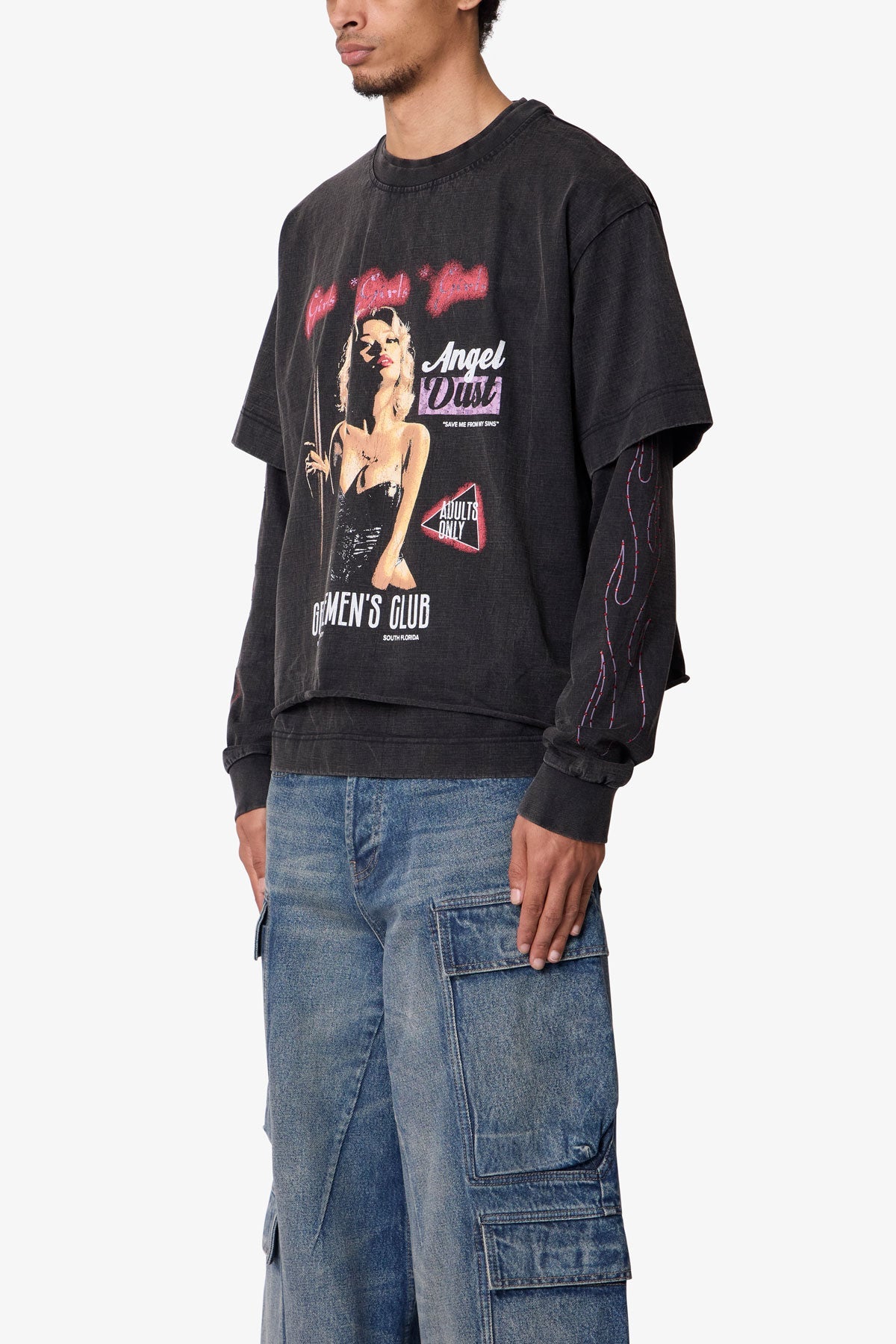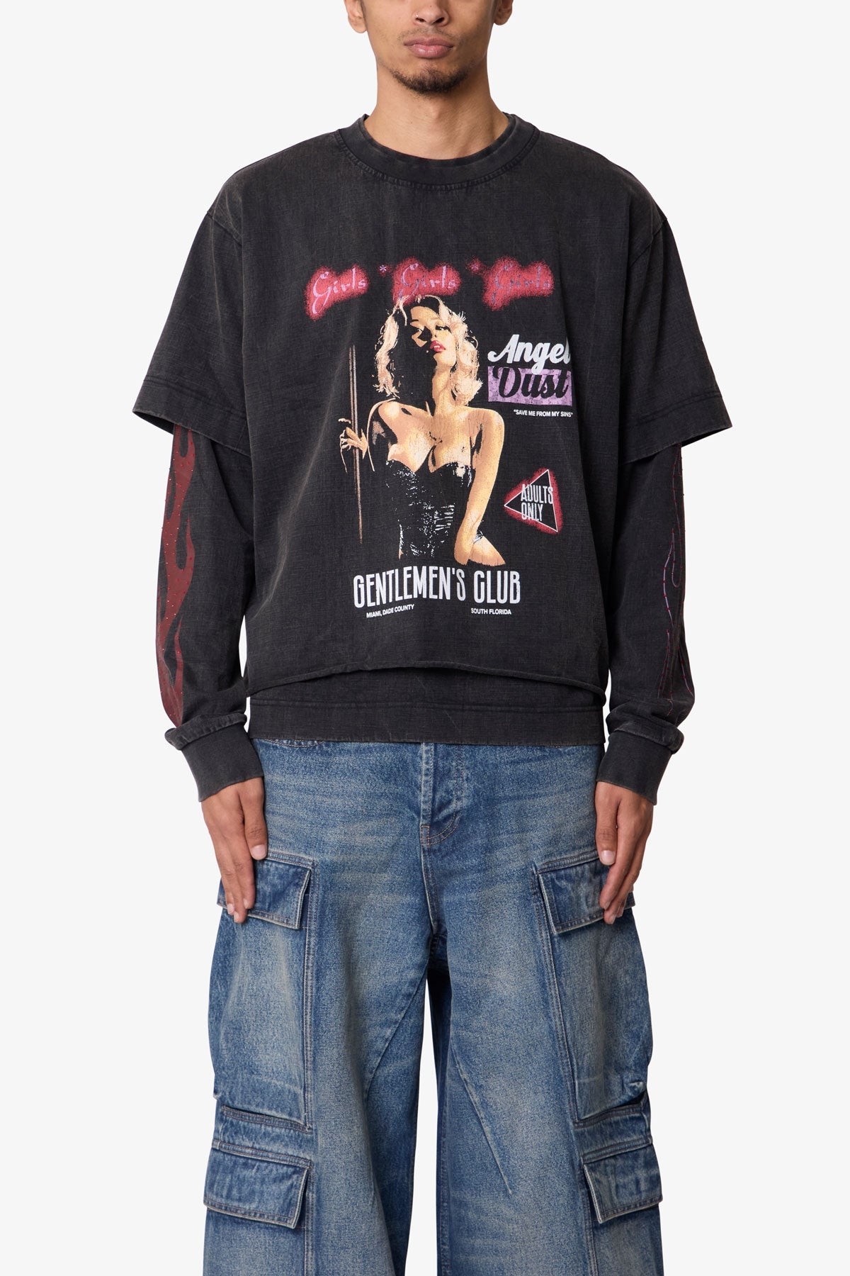 Constructed from 100% cotton jersey with an enzyme wash. the Gentlemens Club Printed L/S Tee features a double layer design with long sleeves and a raw hem. Finished with a screen print graphic on the front and flame detail prints on the sleeves.