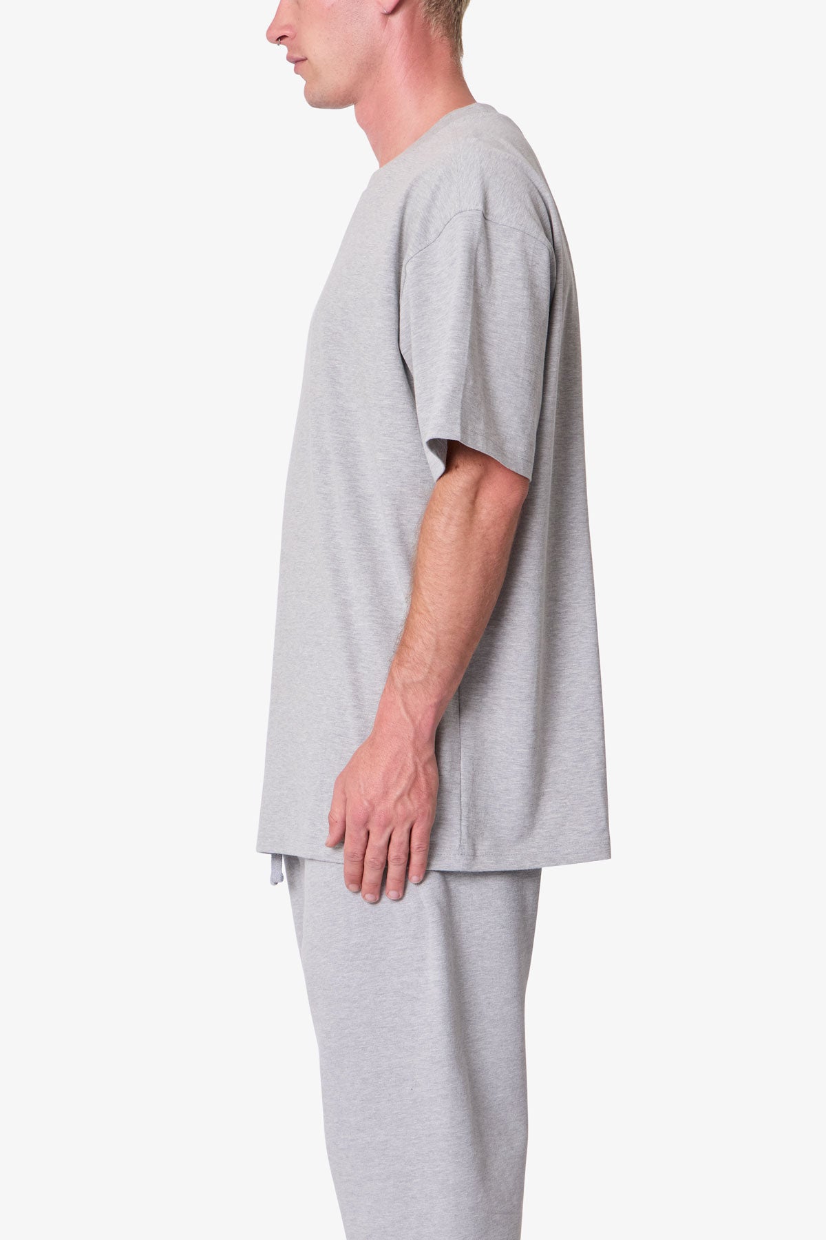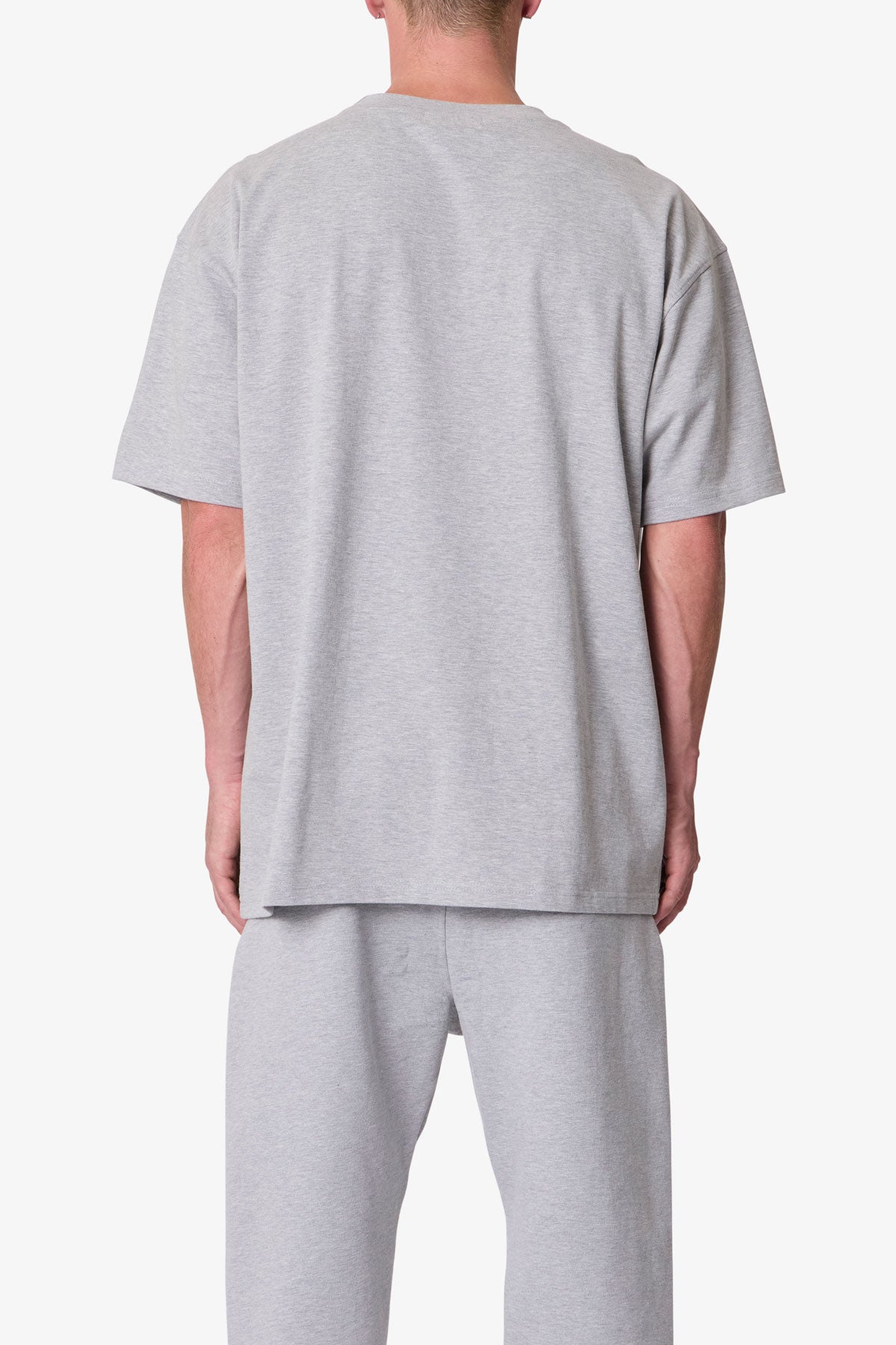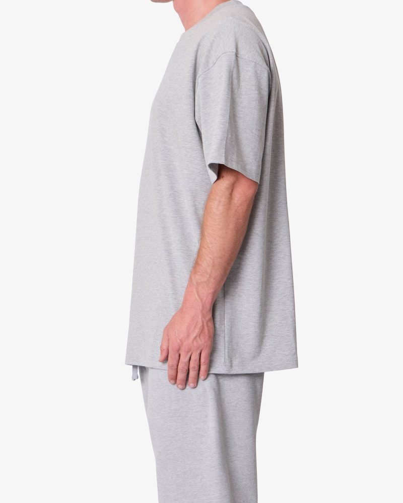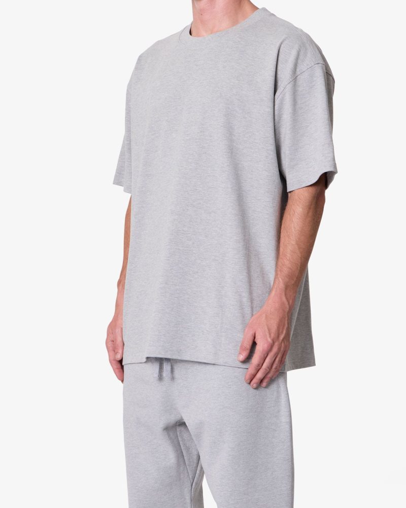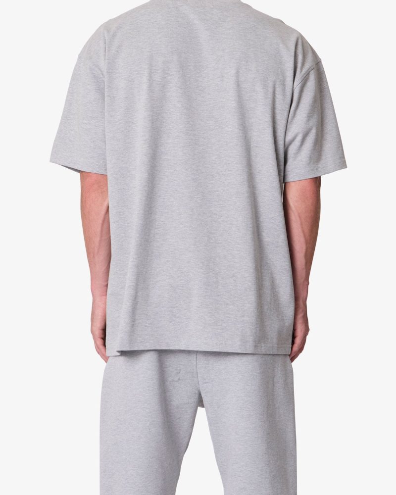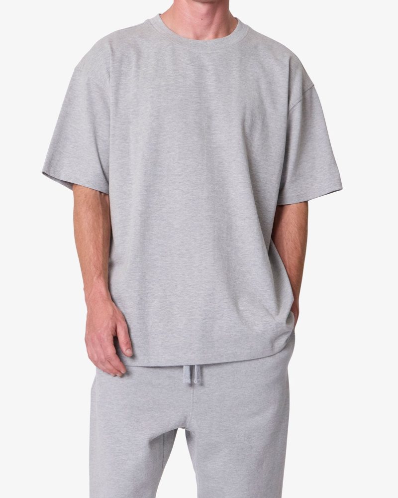 Constructed from heavyweight 300 gsm cotton jersey. the Heavy Basic Tee features a relaxed fit with dropped shoulders. Designed with a ribbed neck and coverstitched hems. the garment-washed fabric offers a structured drape ideal for layering or standalone wear.