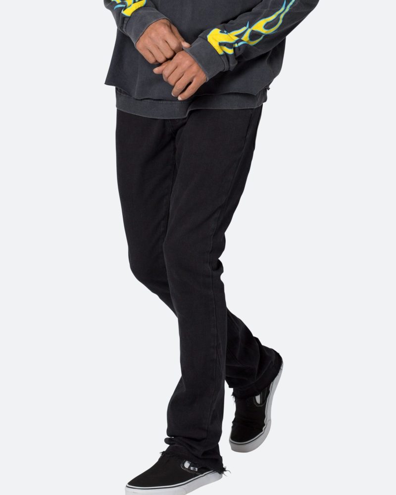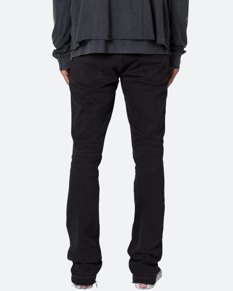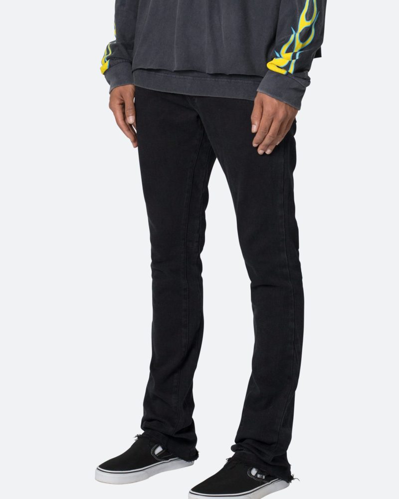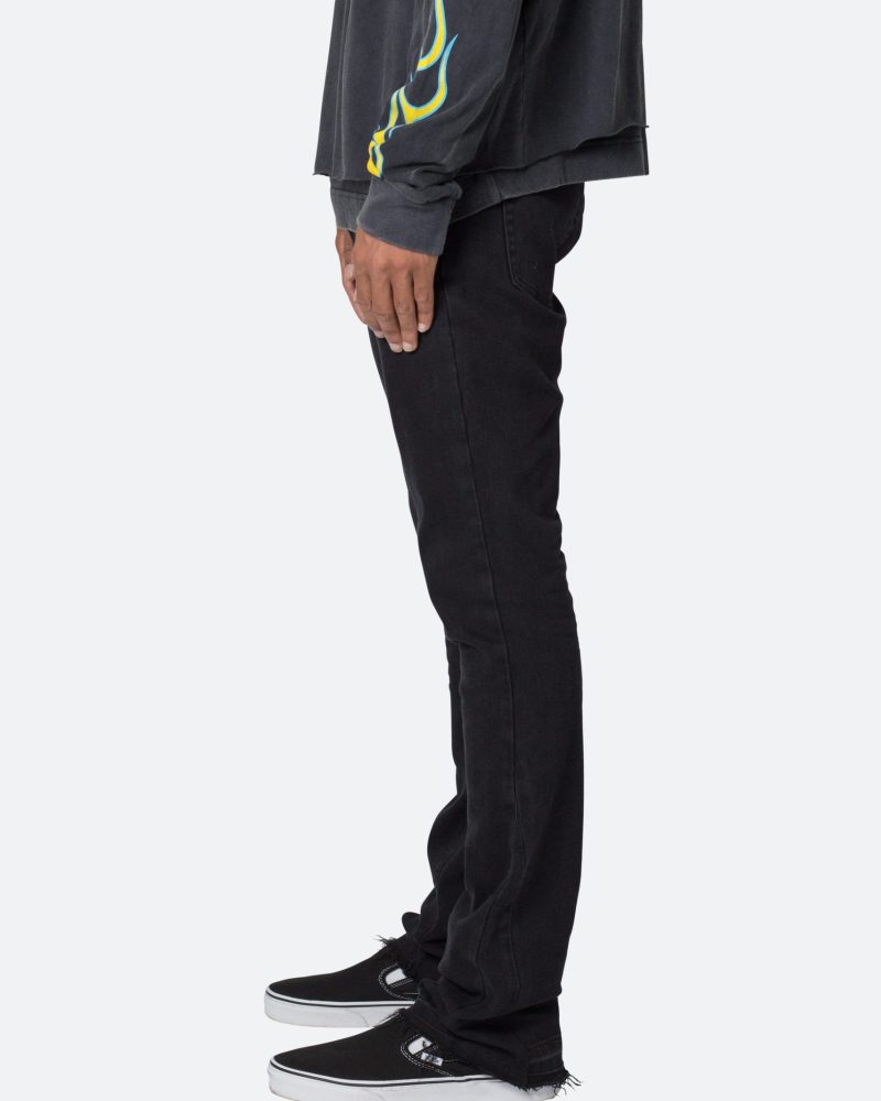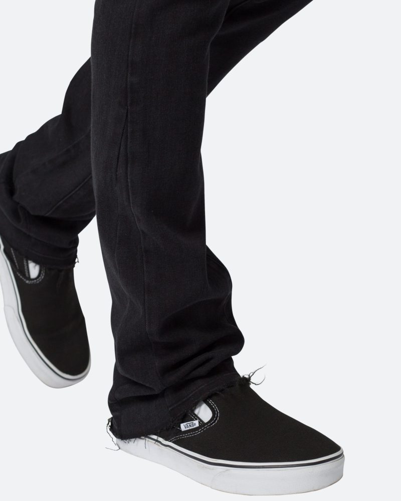 the M524 Slim Stacked Denim is designed with our M fit which is slim throughout with an extended inseam for stacking and a flare at the leg opening. constructed from stretch denim. and finished with a light garment wash for improved hand feel.