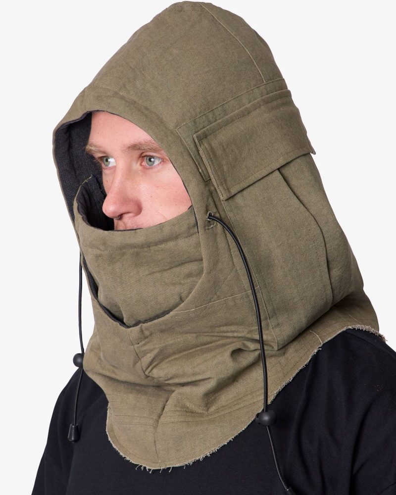 Constructed from vintage-washed cotton canvas. the Military Balaclava features a hooded design with flapped cargo pockets and an adjustable toggle drawcord. Lined in lightweight fleece for added insulation.