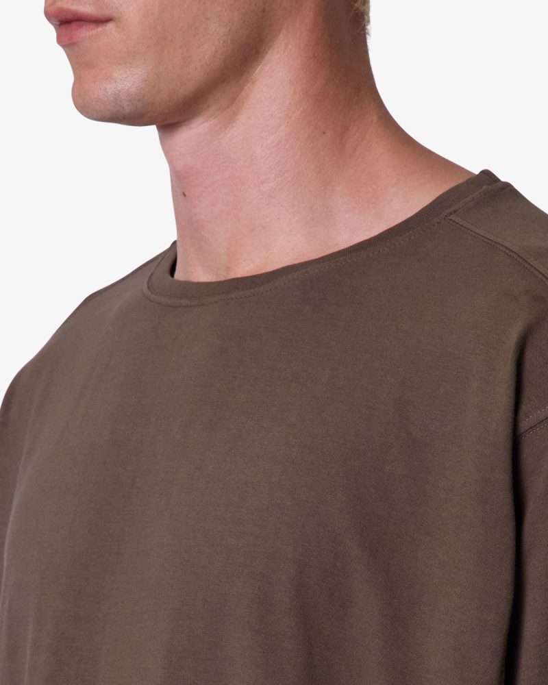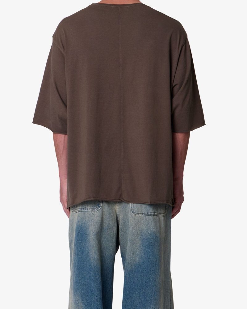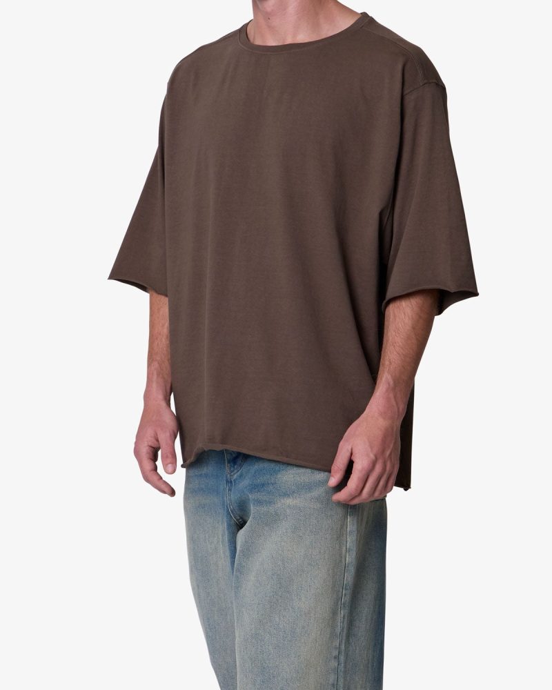 the OG Oversized Tee features a flat. raw. hem line and an extended sleeve length for a cropped. oversized fit. a center seam down the wearers back. and is finished in a garment washed cotton fabric.