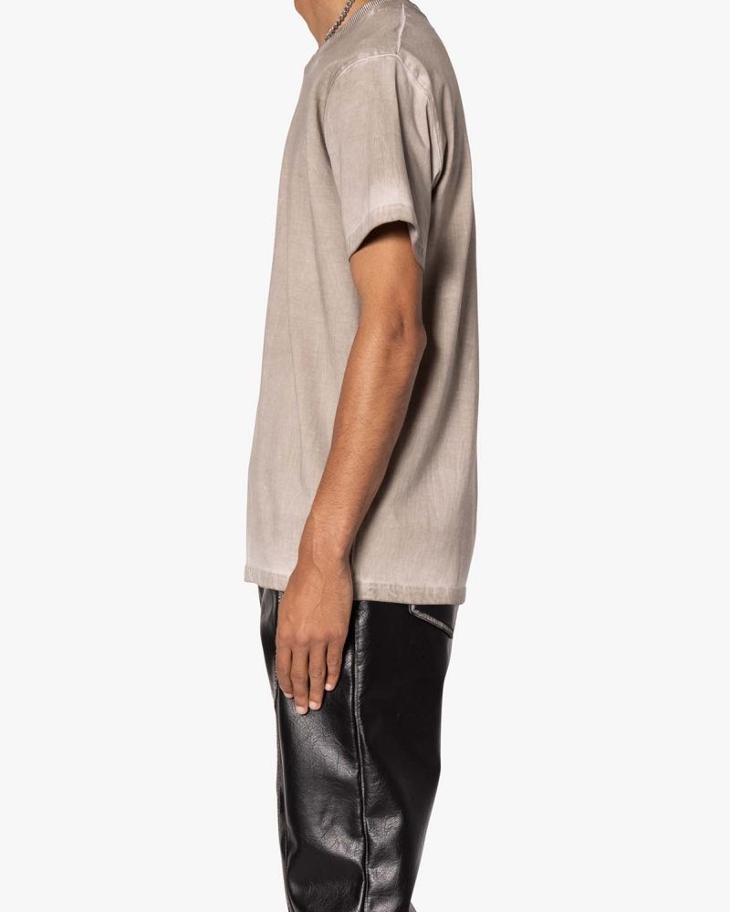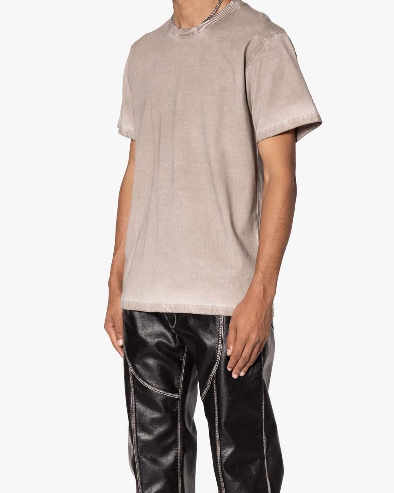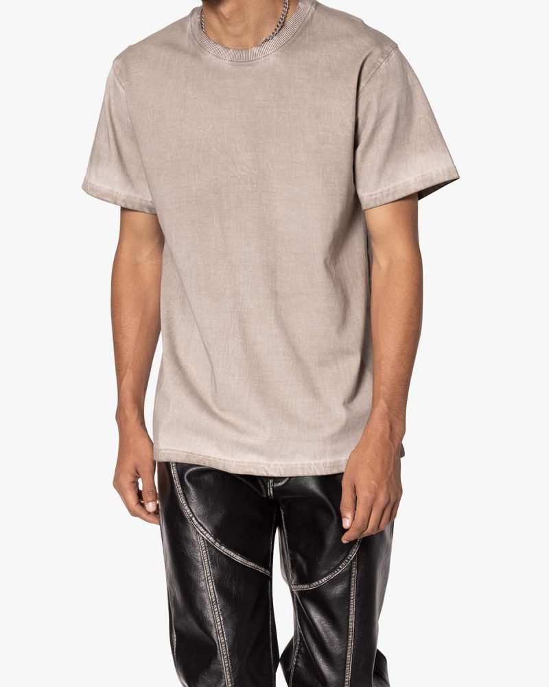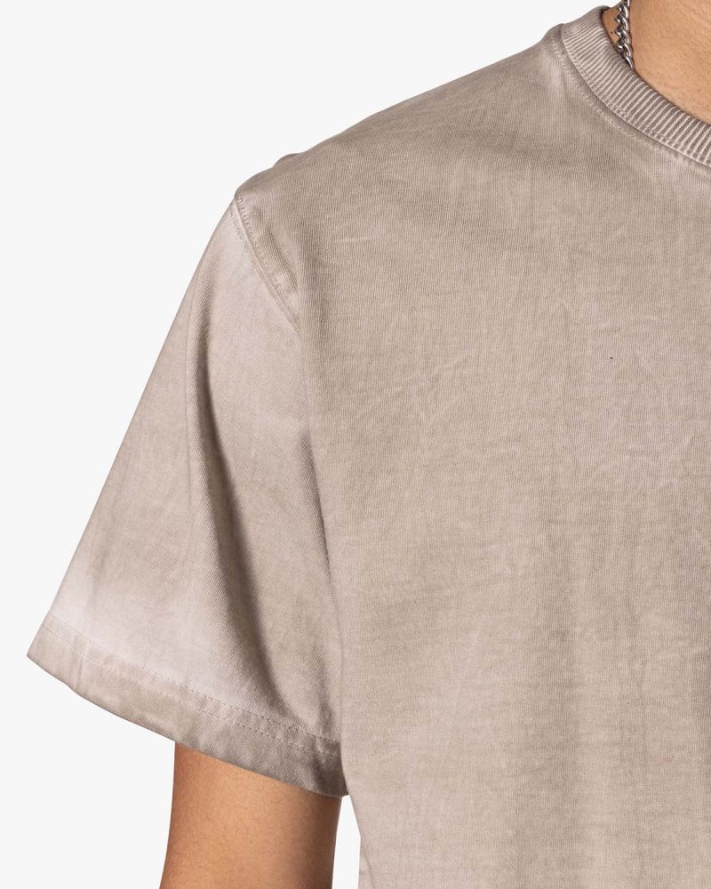 the Oil Rag Tee is a 100% cotton tee is the perfect take on a classic made interesting. The tee features a finished hem. contrast collar. and a gradient spray conveying a dirty rag look