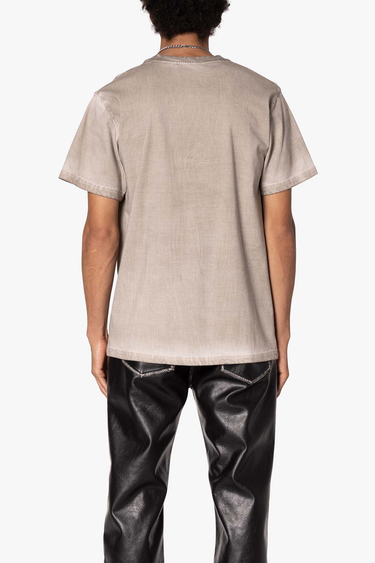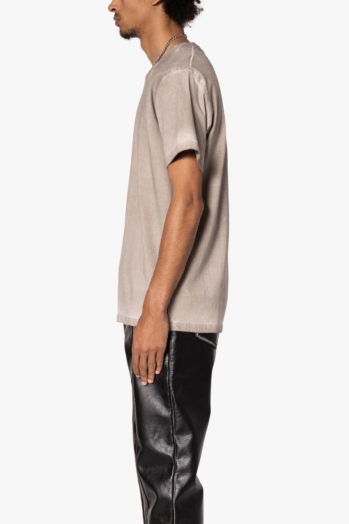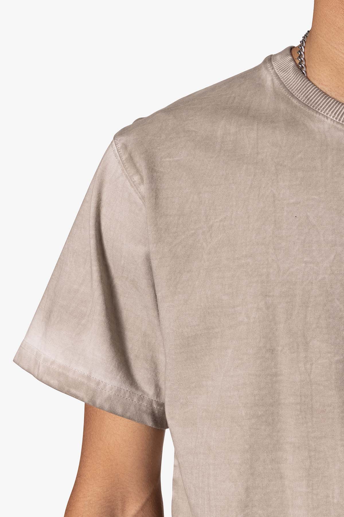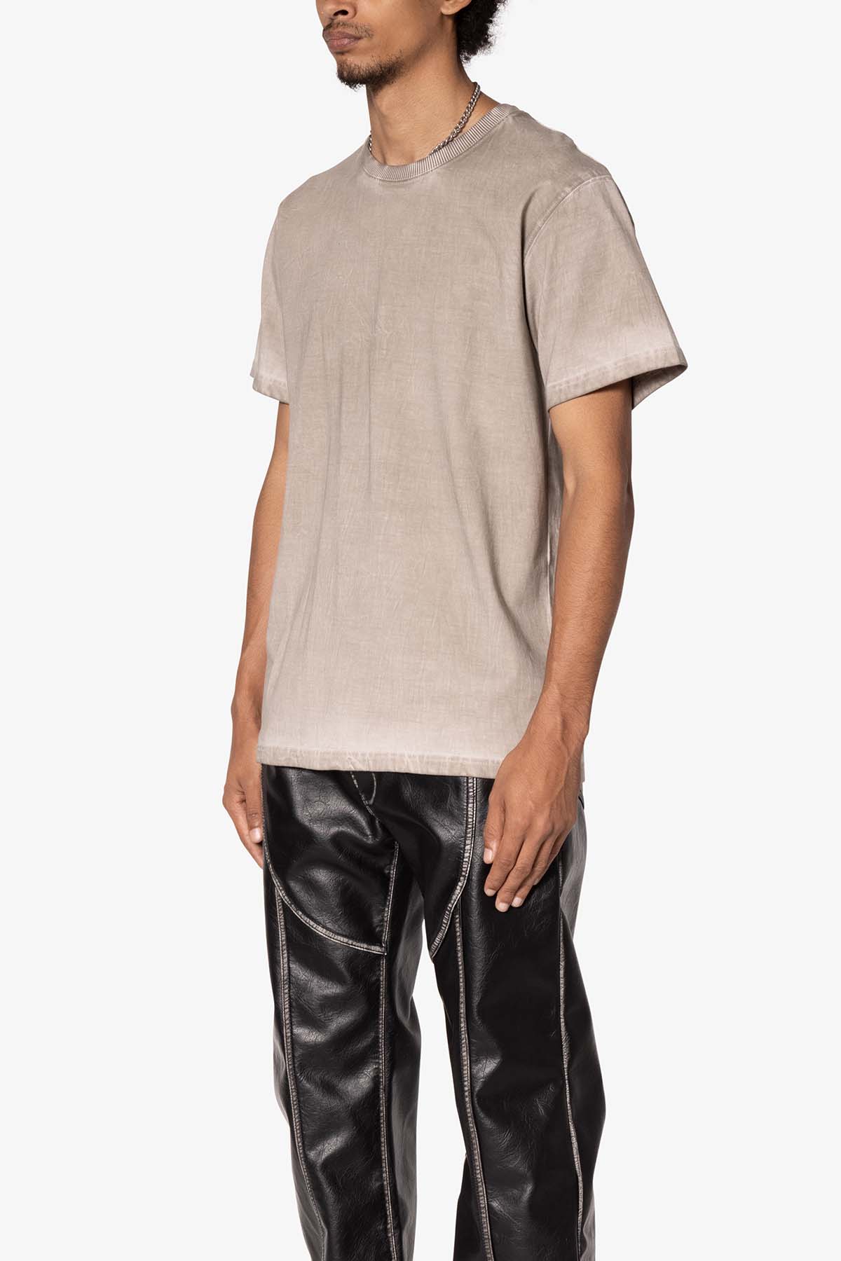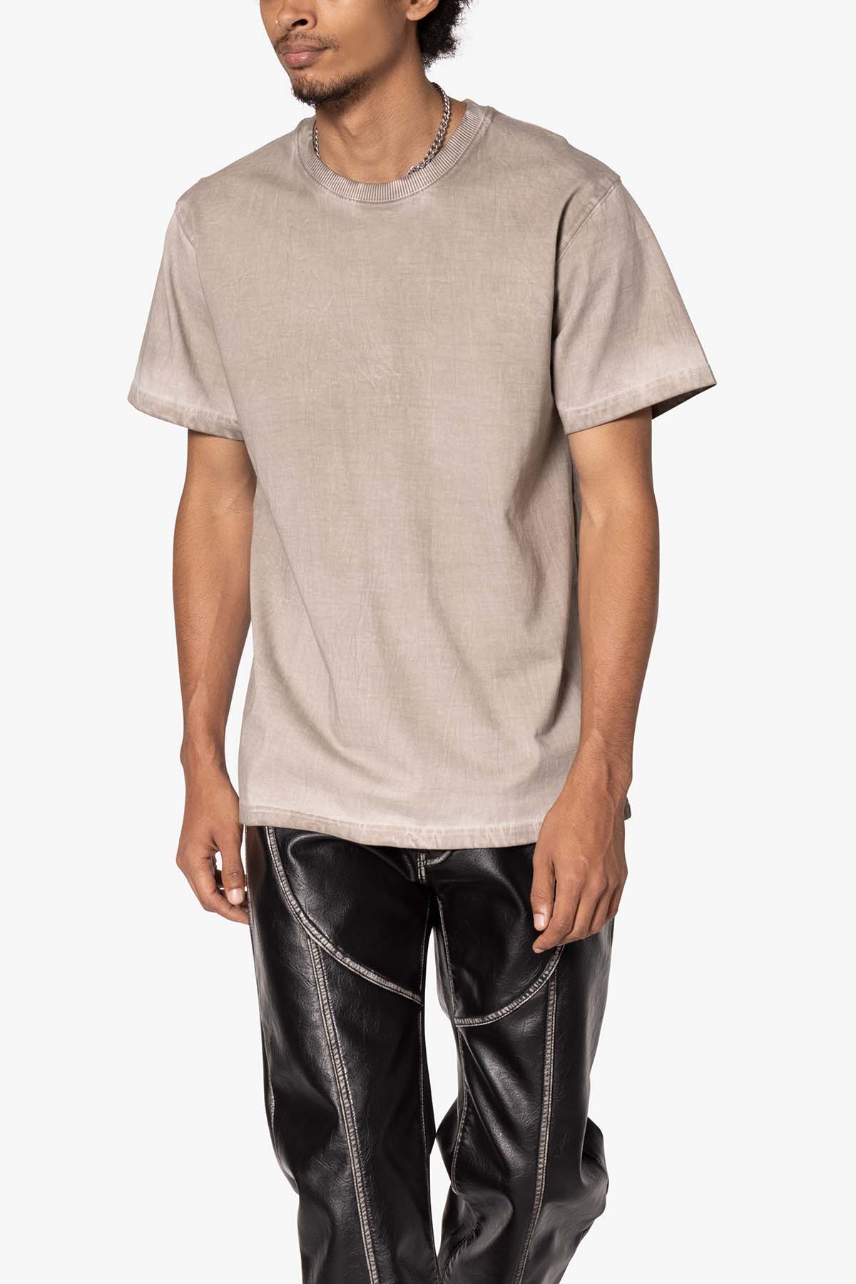 the Oil Rag Tee is a 100% cotton tee is the perfect take on a classic made interesting. The tee features a finished hem. contrast collar. and a gradient spray conveying a dirty rag look