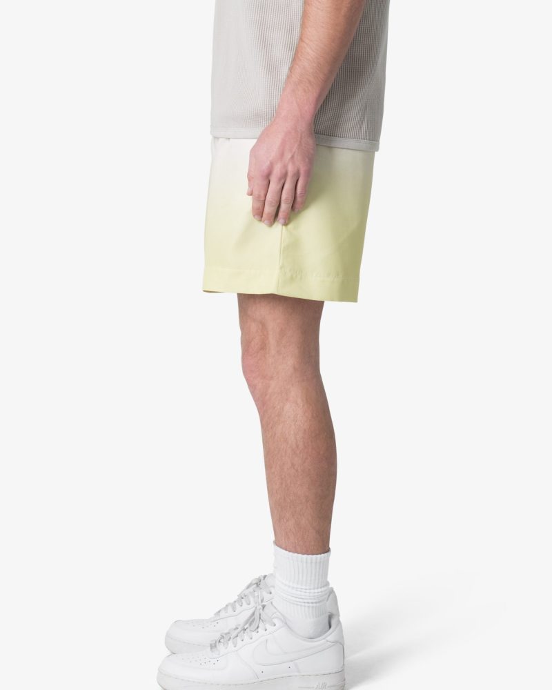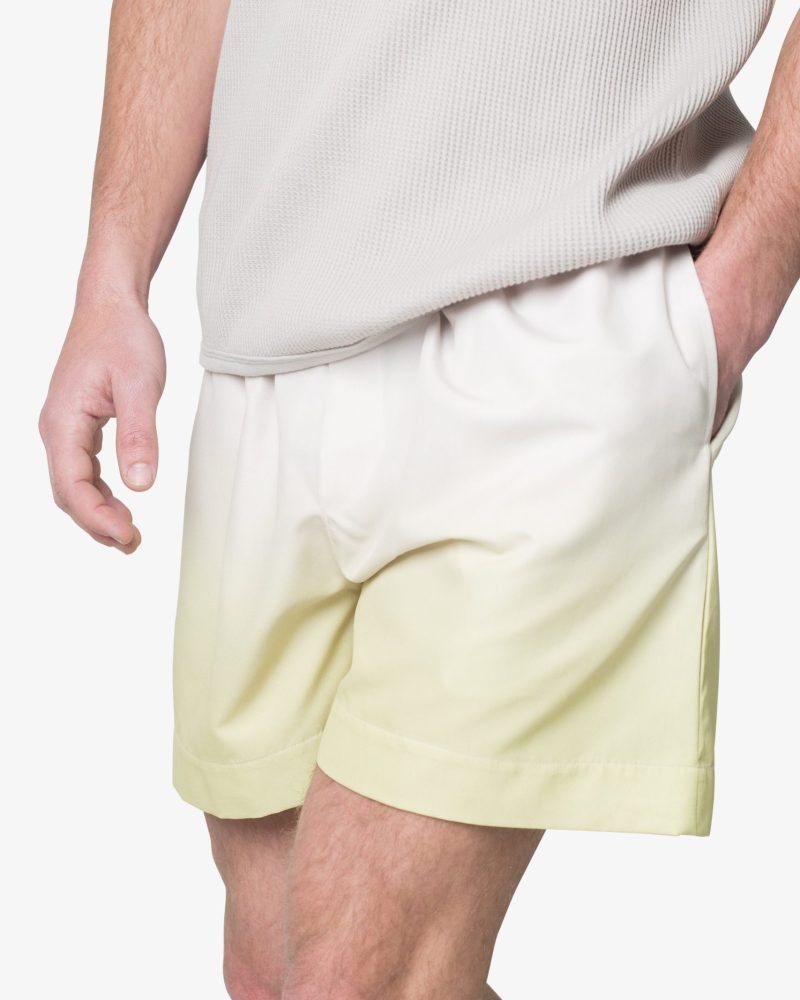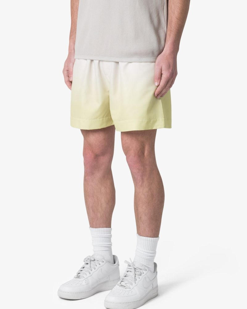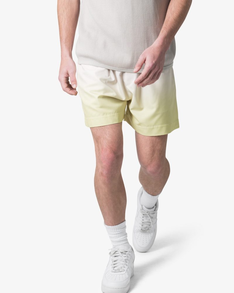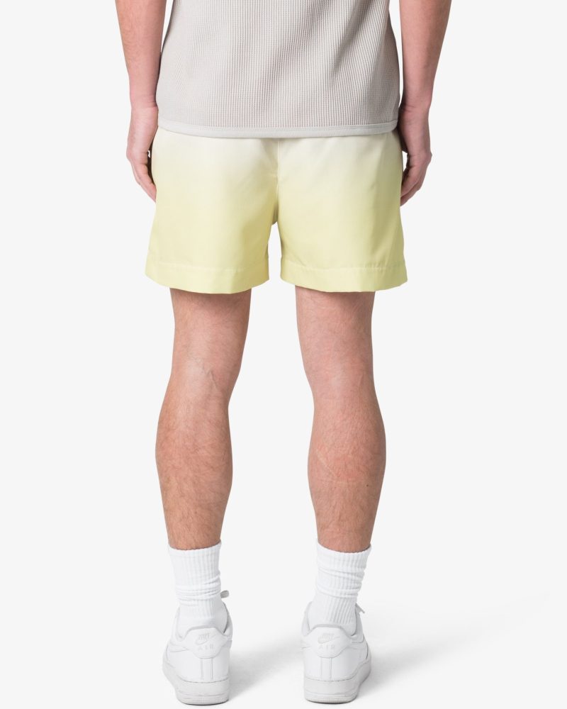 the Ombre Summer Shorts are constructed with a polyester fabric in a relaxed fit. The shorts feature an elasticized waist. welt pockets. an ombre from yellow to tan. and finished with an internal drawcord.