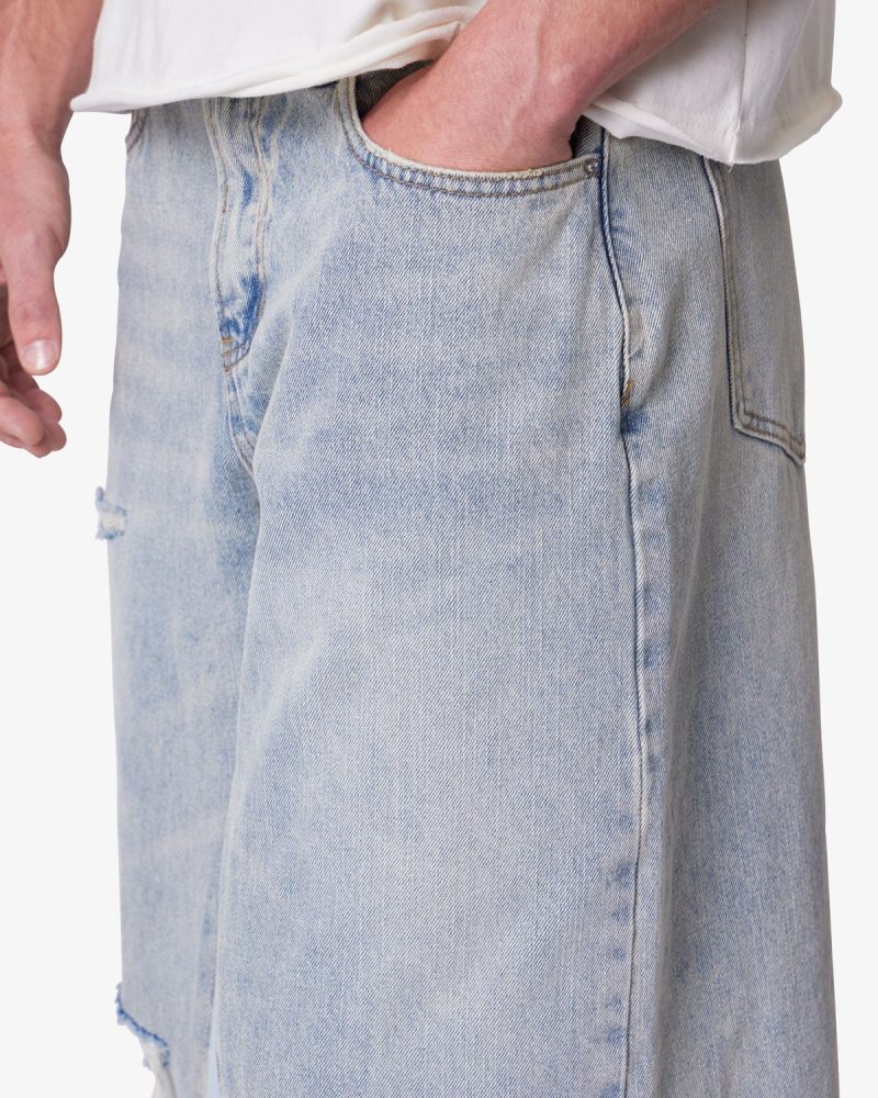 - Washed light blue denim with a vintage fade