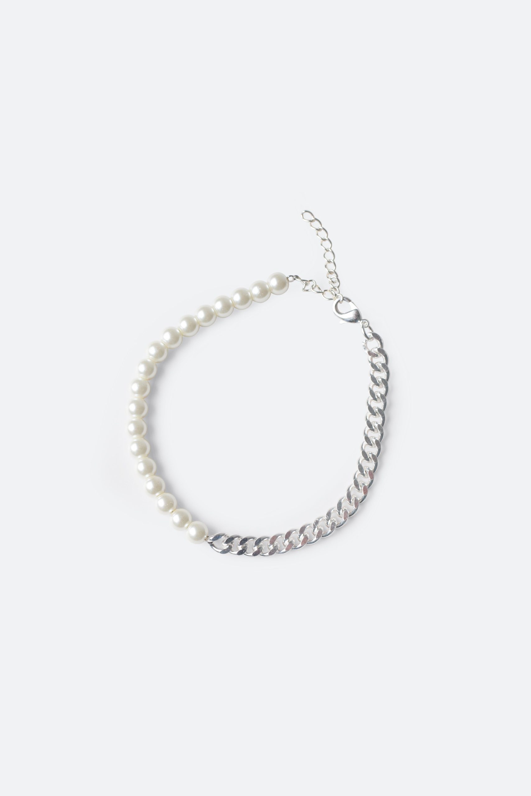 the Pearl and Cuban Chain Bracelet is constructed of a stainless steel cuban link chain with white and colored beads. and features a stainless steel lobster clasp.