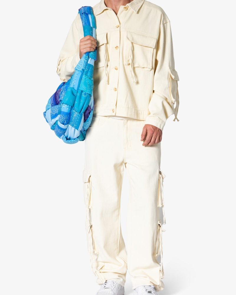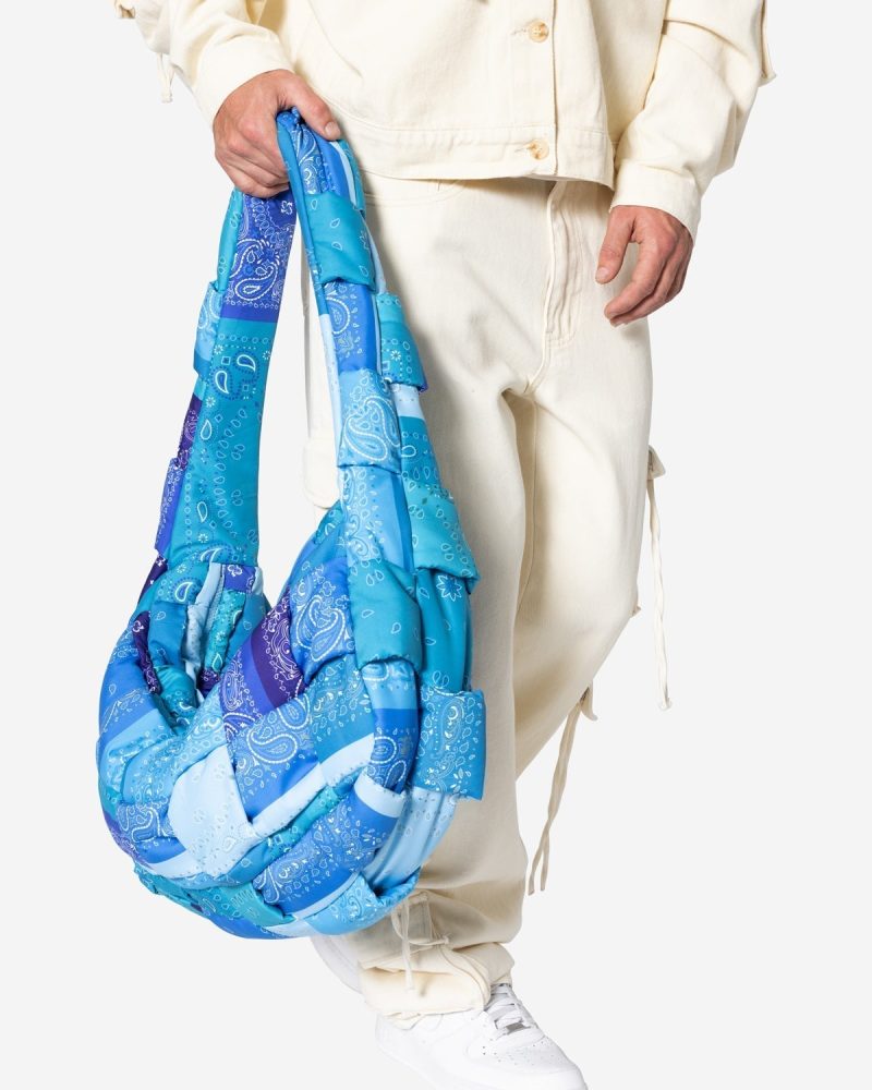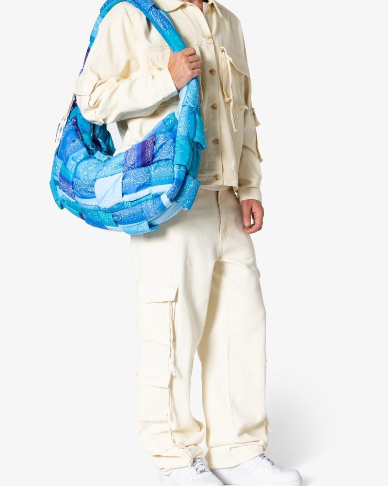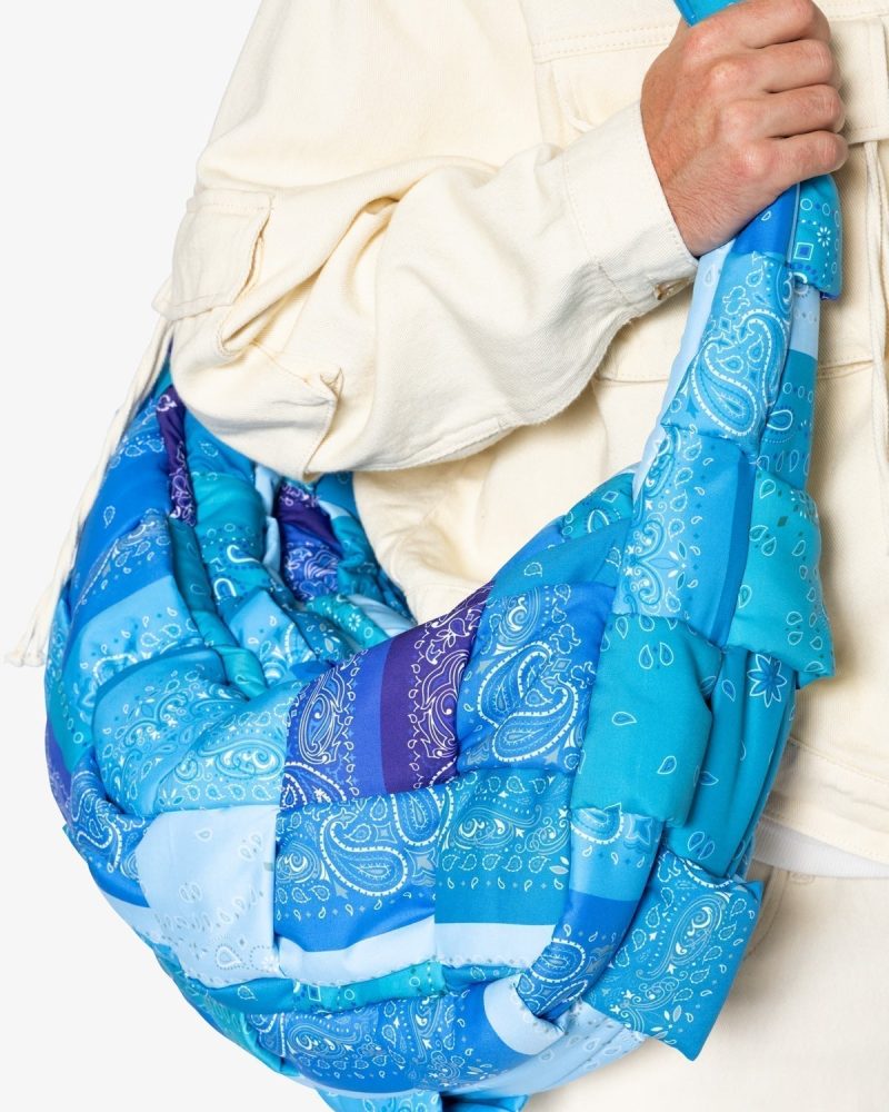 the Quilted Cross Body Bag is constructed from a sublimated polyester fabric with one large compartment that is closed with a zipper. large compartment is lined in tonal self fabric. and is finished in a woven polyfilled construction for a unique quilted look.