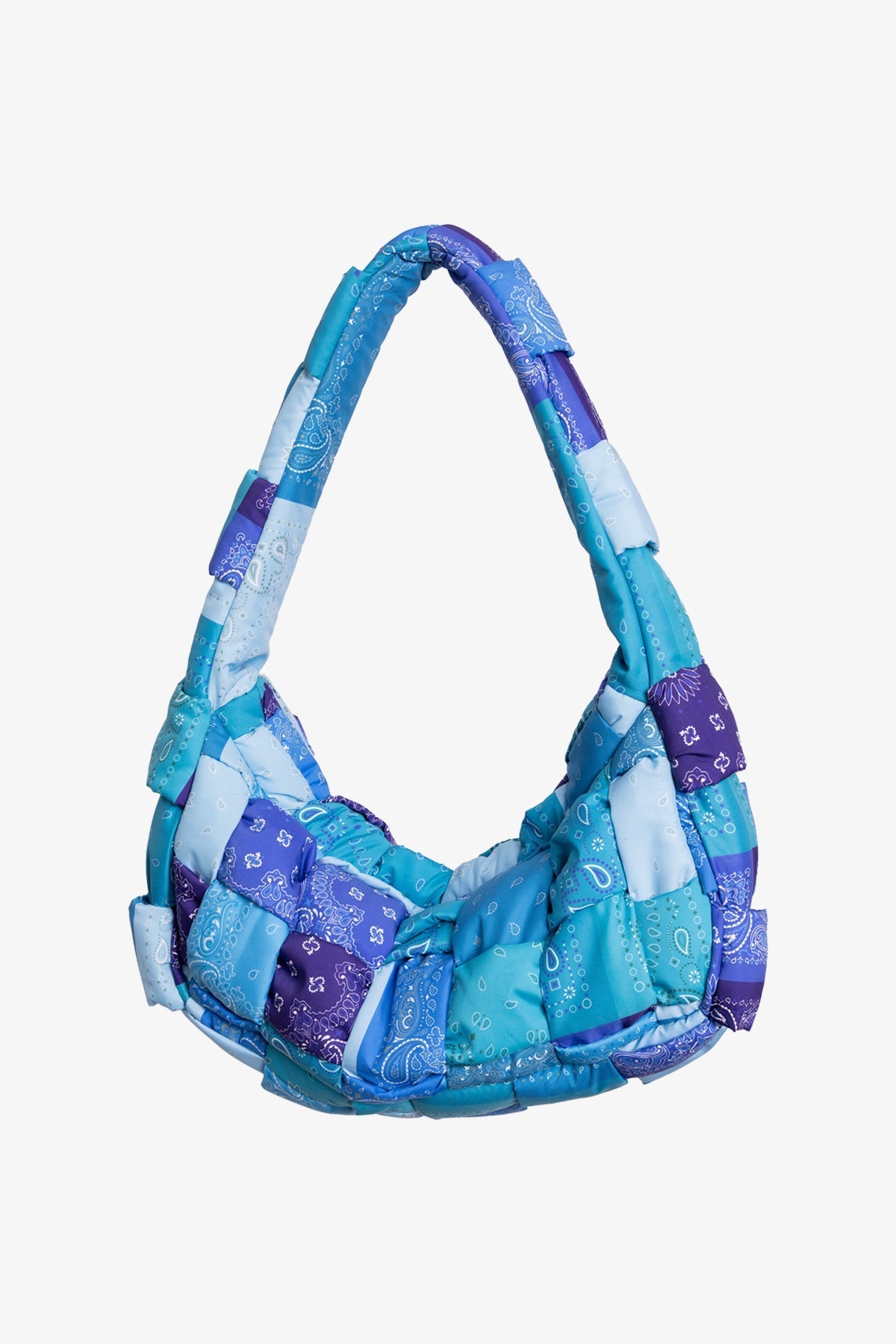 the Quilted Cross Body Bag is constructed from a sublimated polyester fabric with one large compartment that is closed with a zipper. large compartment is lined in tonal self fabric. and is finished in a woven polyfilled construction for a unique quilted look.