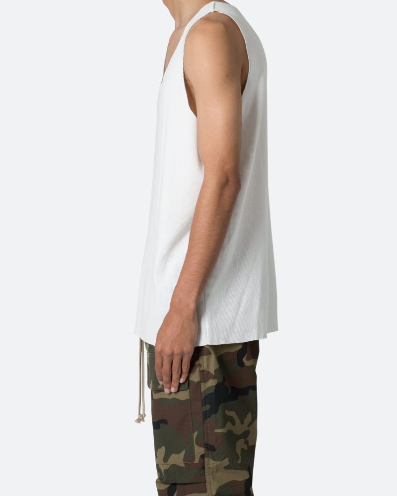 the Raw Edge Thermal Tank is a cotton tank is perfect as a base layer or worn alone. the tank features raw edges at the neck. arm openings. and hem. and is constructed in a thermal fabric.