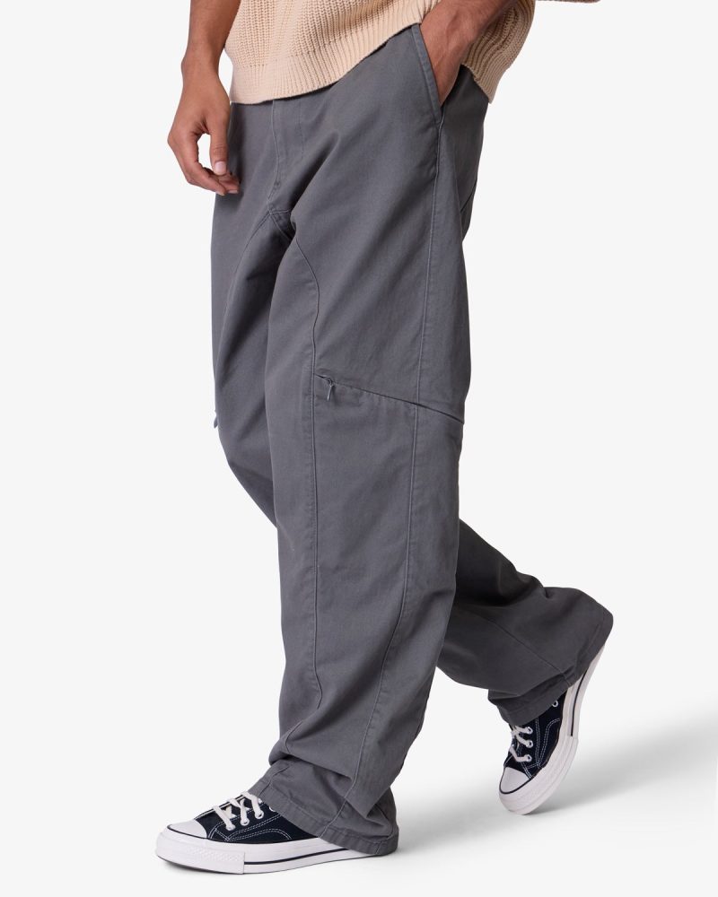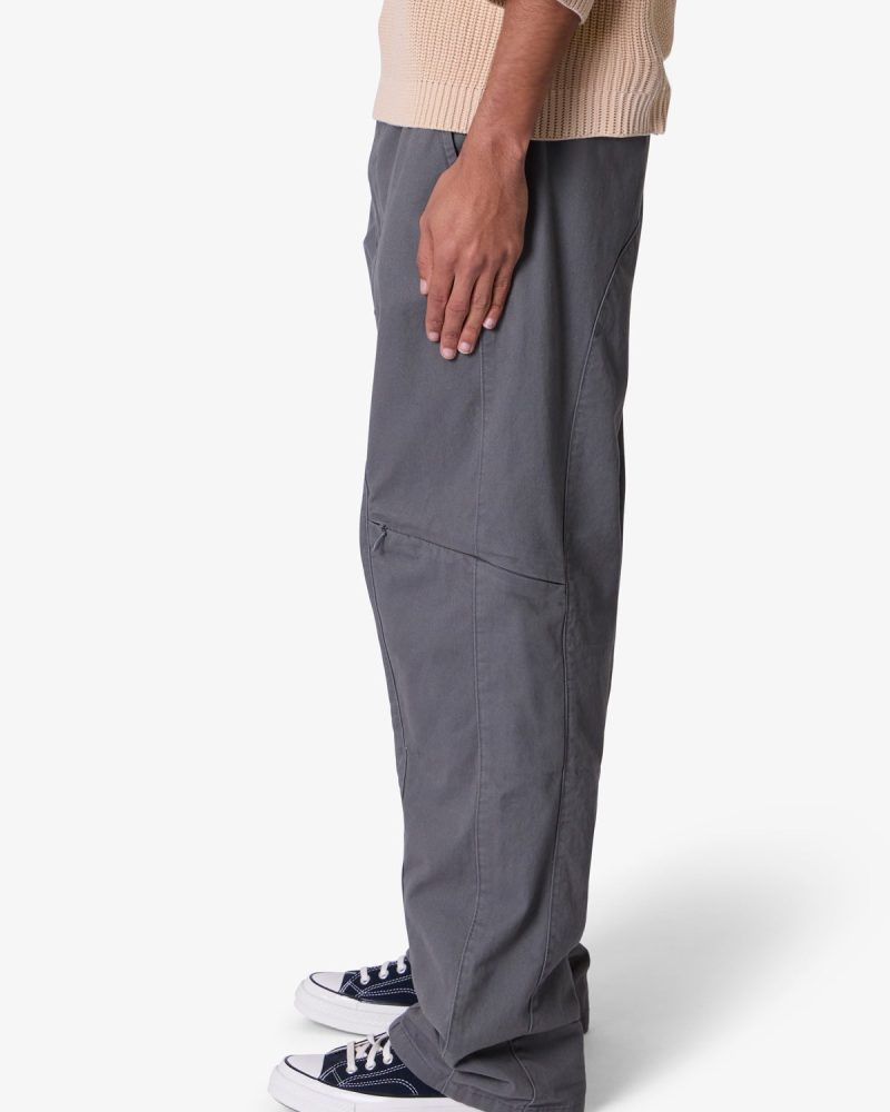 the Secret Zipper Cargo Pants are designed with a new oversized ultra baggy fit. constructed from a cotton fabric with a rinse wash. featuring cargo pockets throughout with hidden zipper closures. and finished with a button placket.