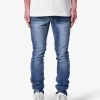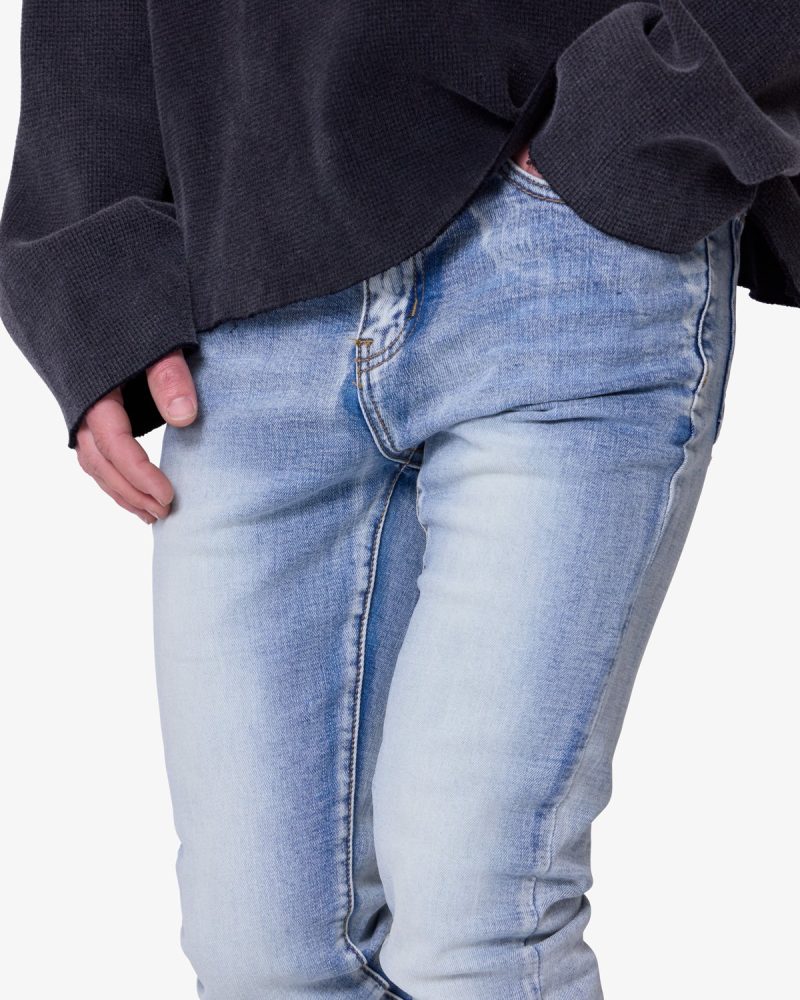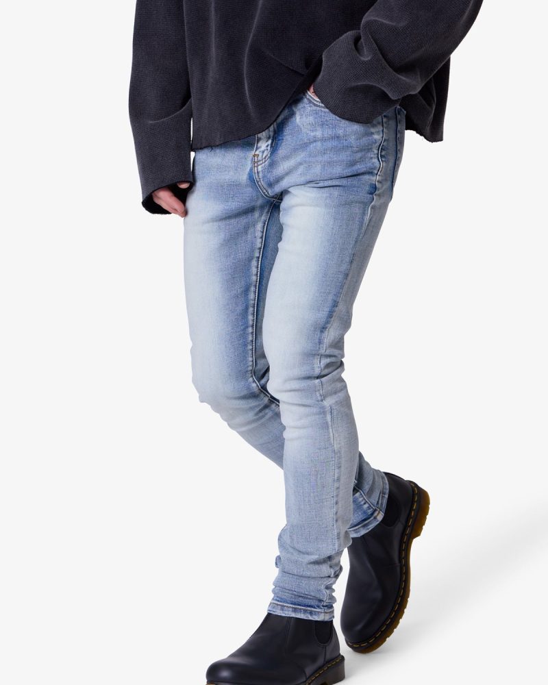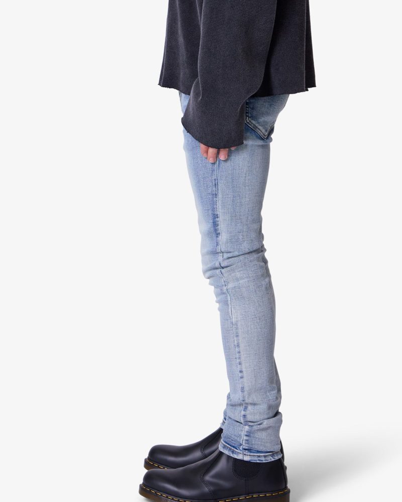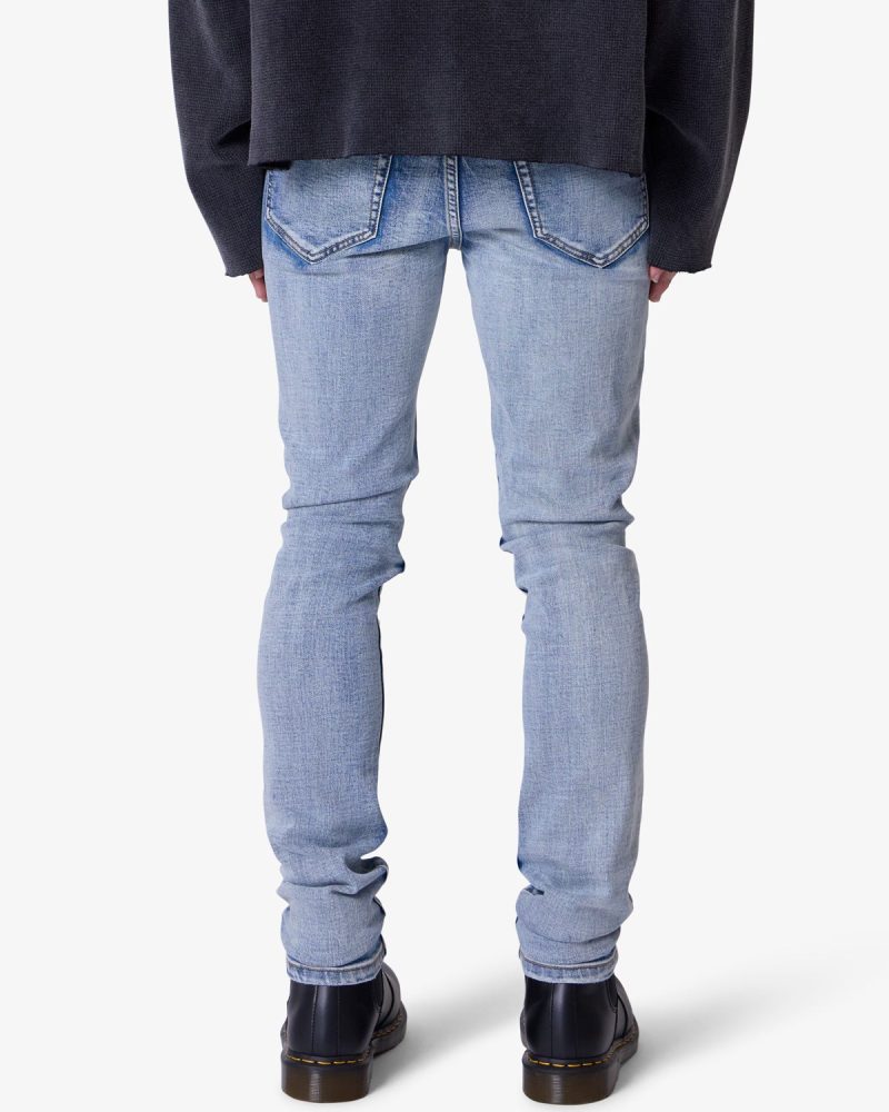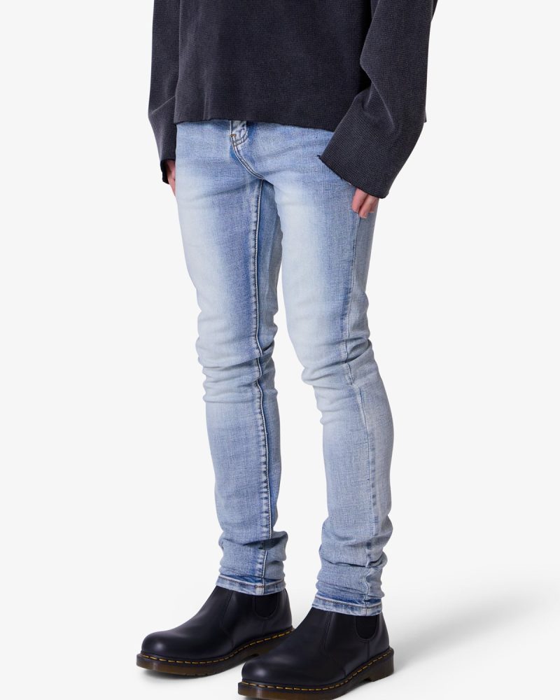the new Skinny Denim are designed with our new and updated skinny fit. which is skinny throughout for increased comfort and updated look. and is constructed from stretch 13 oz indigo cotton denim with a light vintage wash. and finished with traditional five pocket denim details.