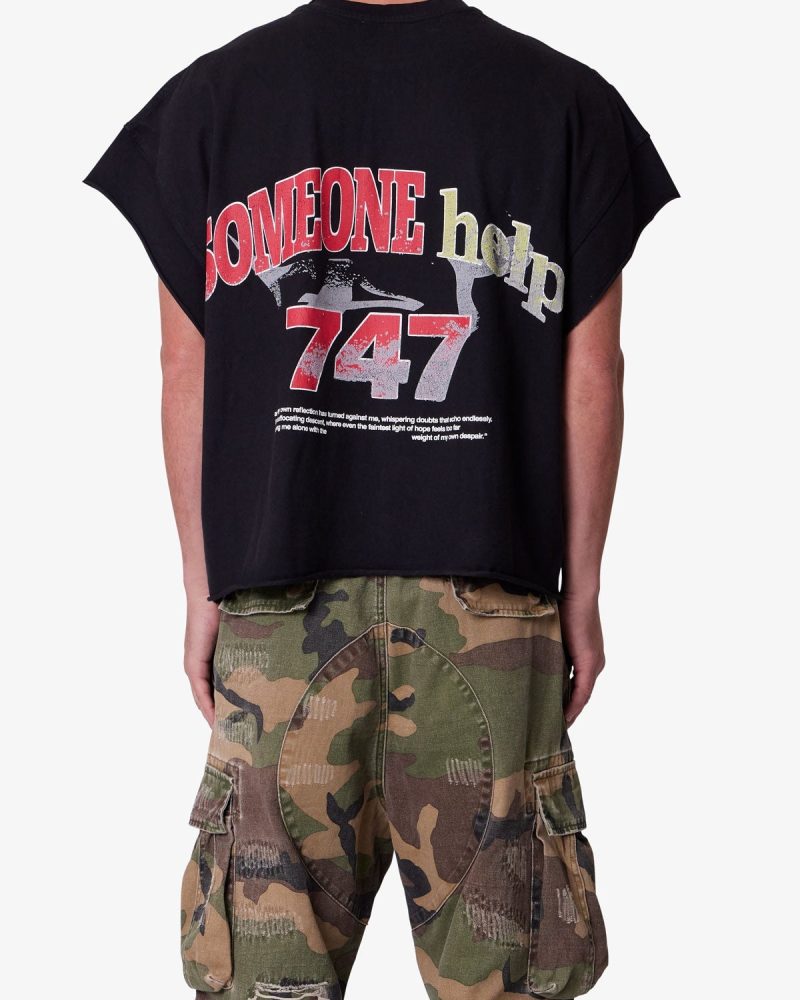 Constructed from 100% cotton with a vintage wash. this sleeveless tee features a cropped. boxy fit with raw cut arm holes and hem. Designed with snake screen print graphics on the front and back. the artwork features a cracked effect for a worn-in look. Finished with a ribbed neckline for structure.
