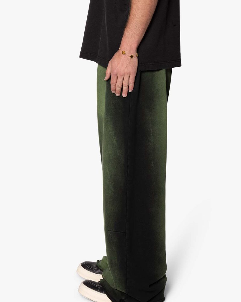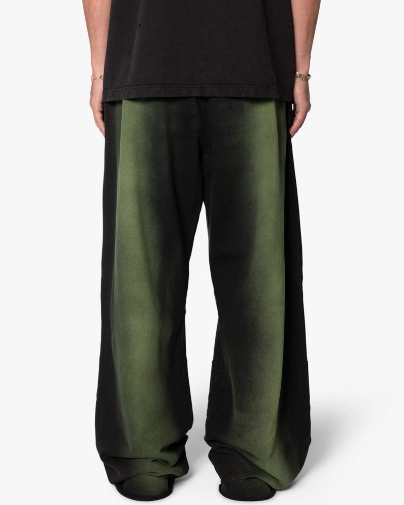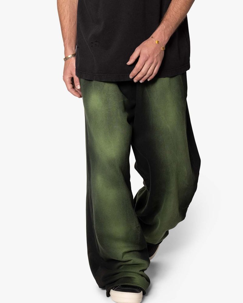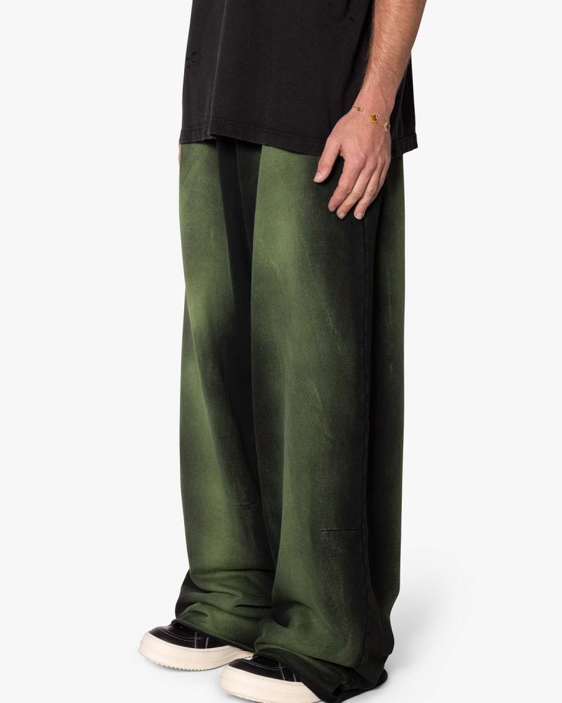 the Sprayed Ultra Baggy Sweatpants are designed with an ultra baggy fit throughout. featuring an elasticized self waist. cotton drawstrings. standard hem at the leg opening. and finished in both a tinted spray wash and brushed fleece fabric.