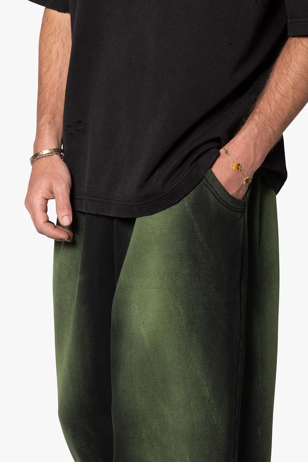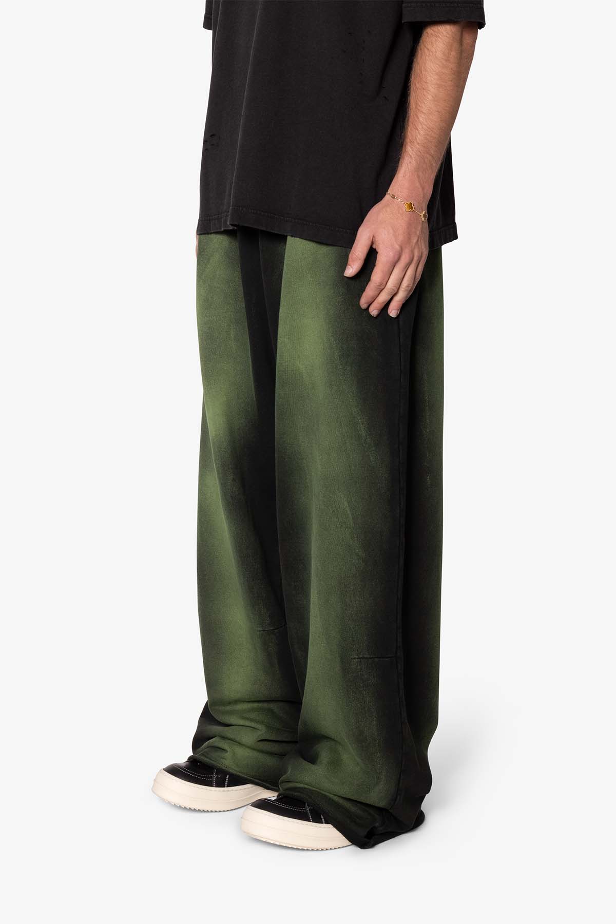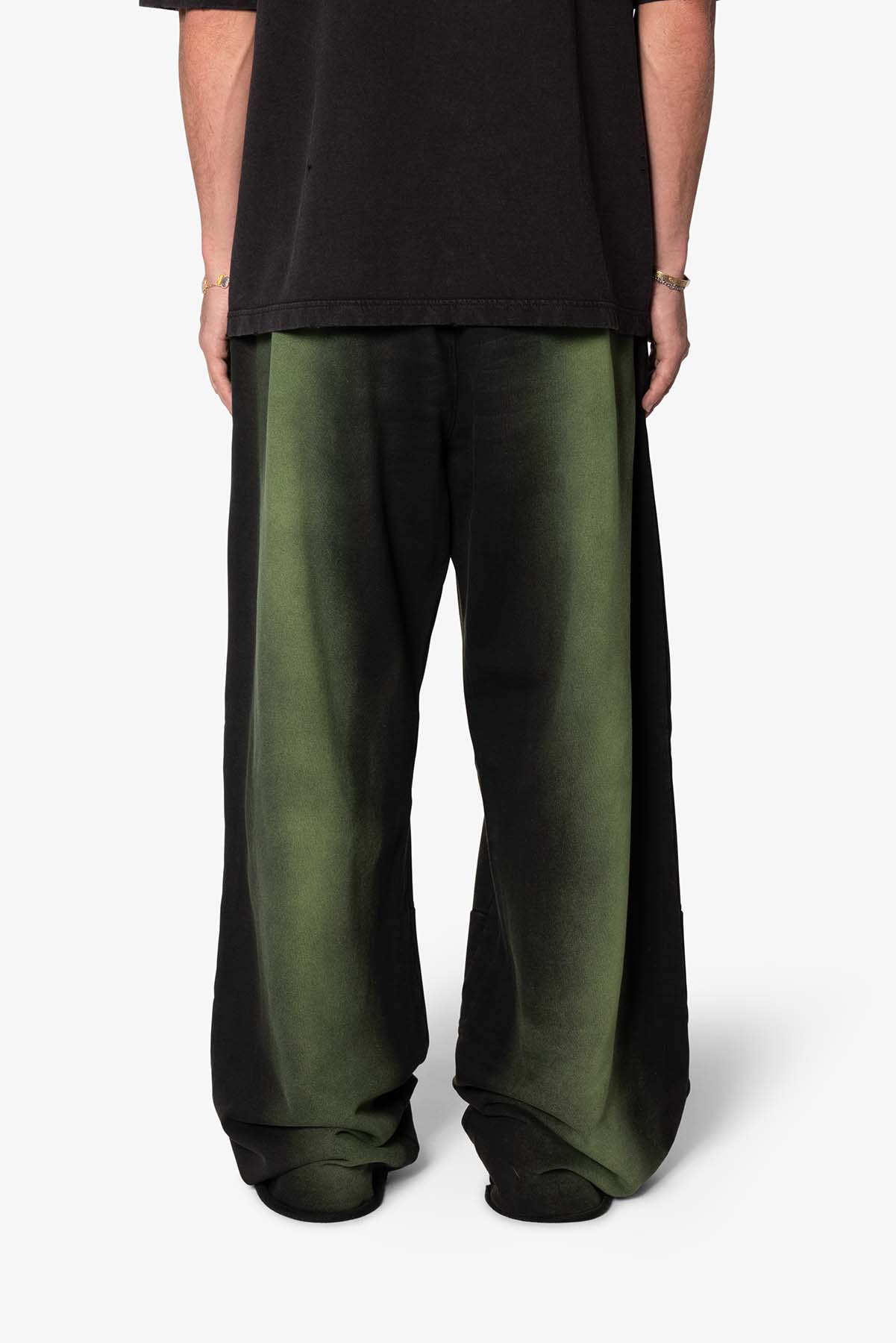 the Sprayed Ultra Baggy Sweatpants are designed with an ultra baggy fit throughout. featuring an elasticized self waist. cotton drawstrings. standard hem at the leg opening. and finished in both a tinted spray wash and brushed fleece fabric.