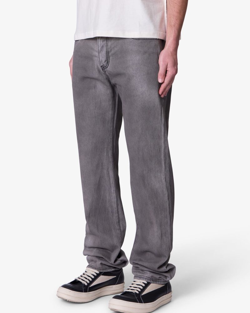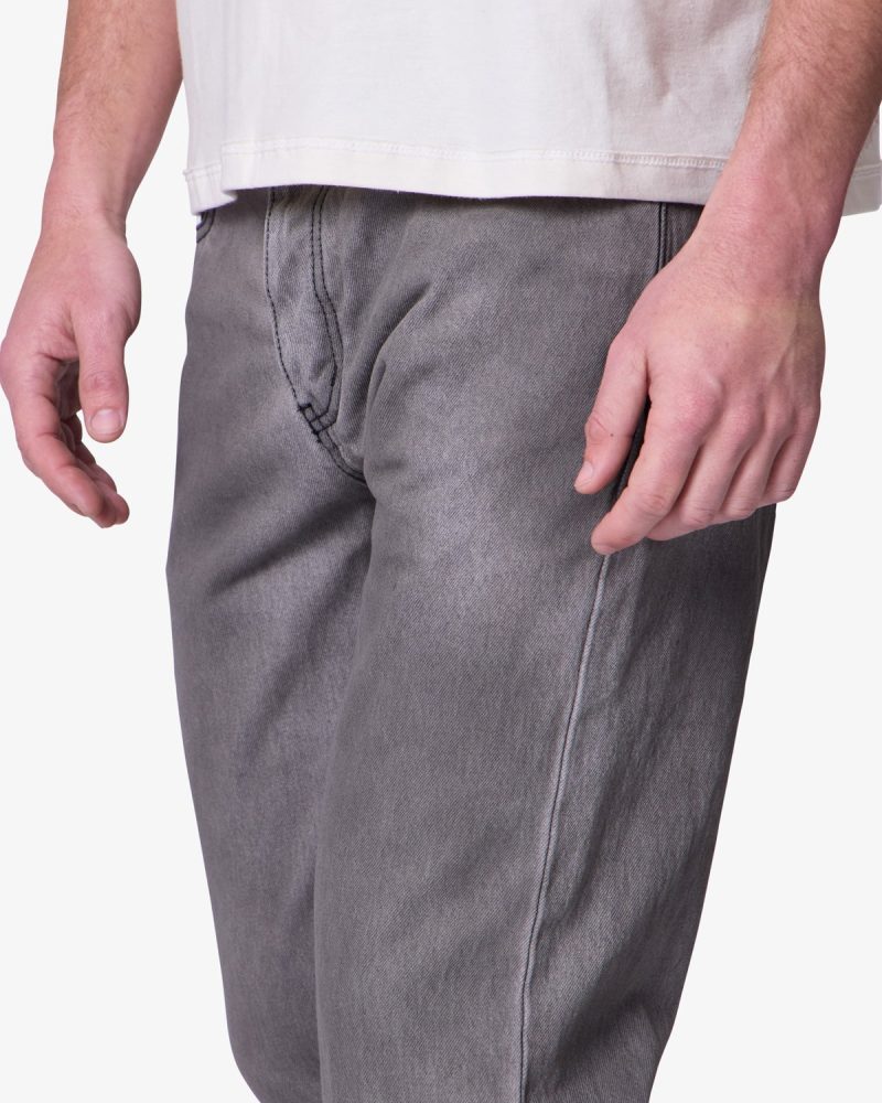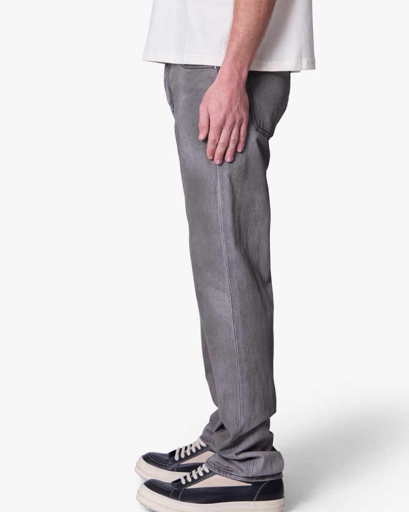 the new Straight Denim are designed with our new and updated relaxed fit. which is relaxed throughout for increased comfort and updated look. and is constructed from 100% 13 oz black cotton denim with a heavy vintage wash. and finished with traditional five pocket denim details.