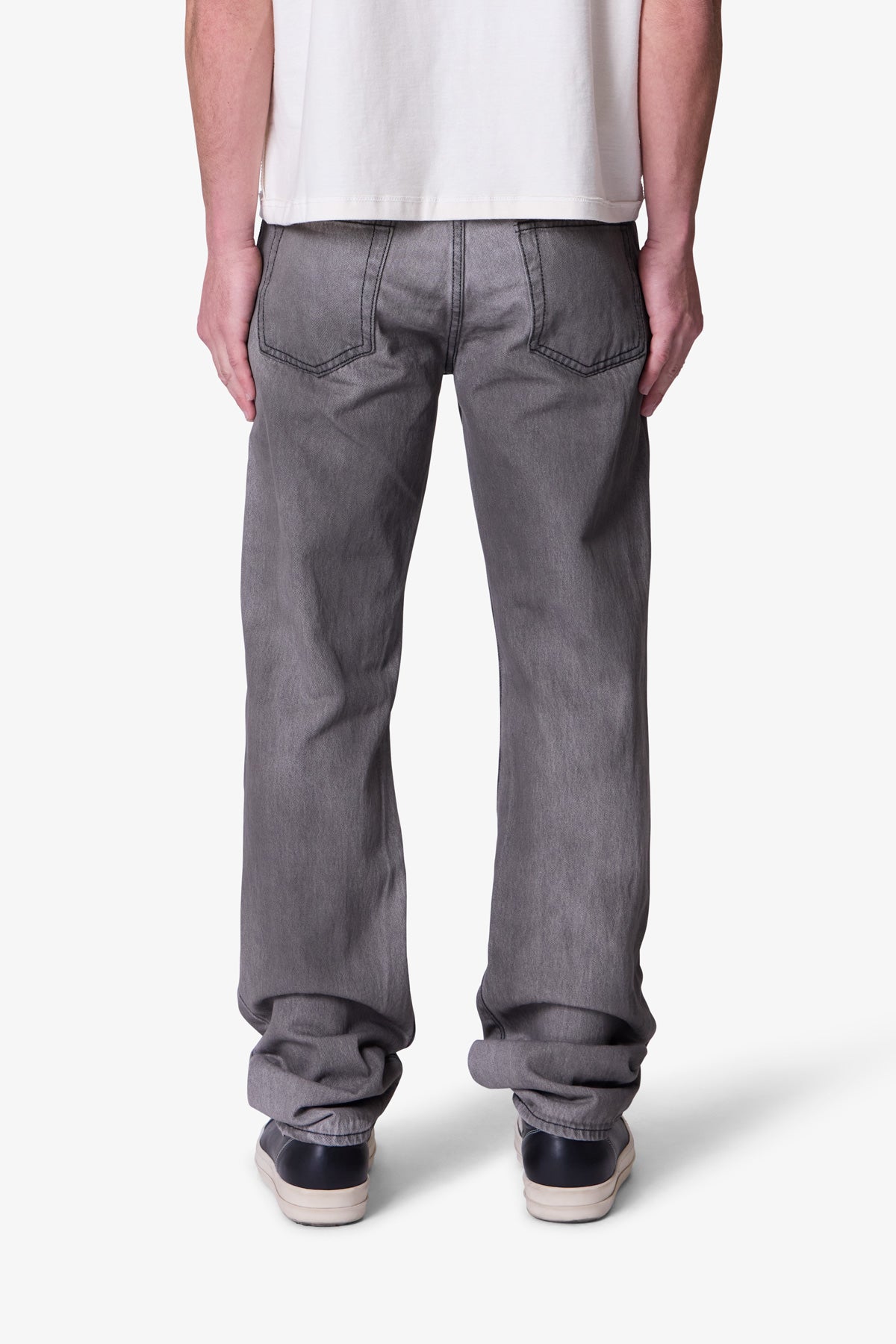 the new Straight Denim are designed with our new and updated relaxed fit. which is relaxed throughout for increased comfort and updated look. and is constructed from 100% 13 oz black cotton denim with a heavy vintage wash. and finished with traditional five pocket denim details.