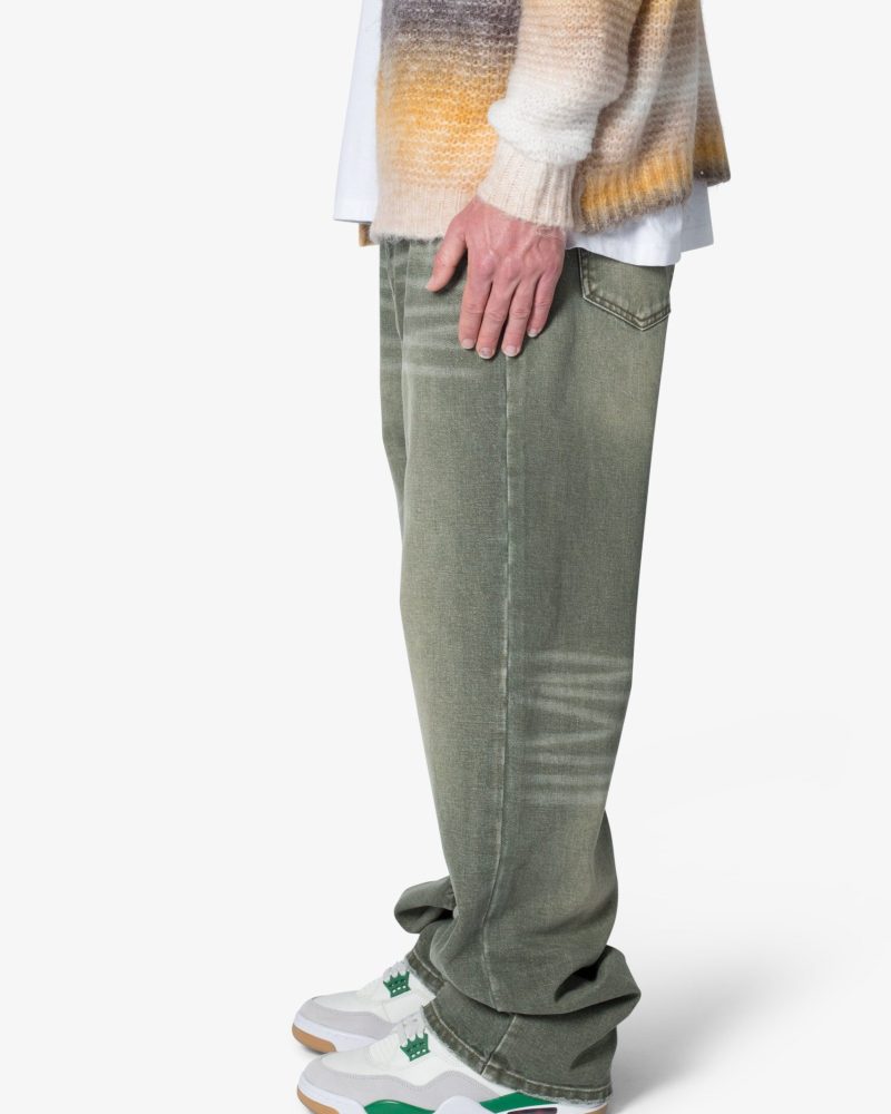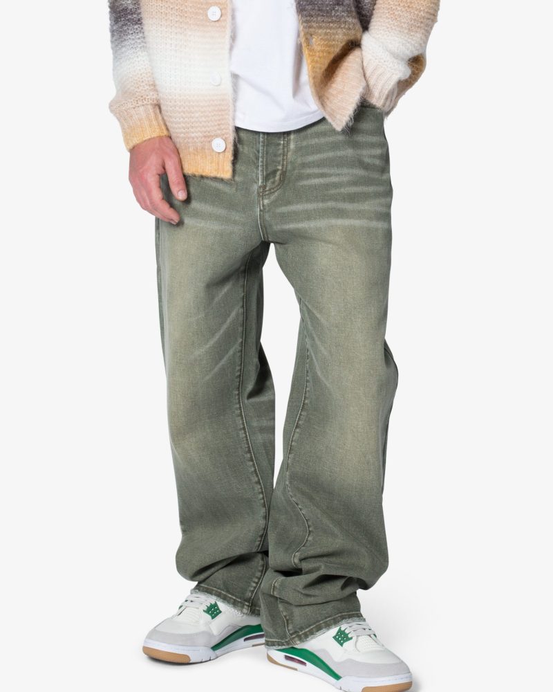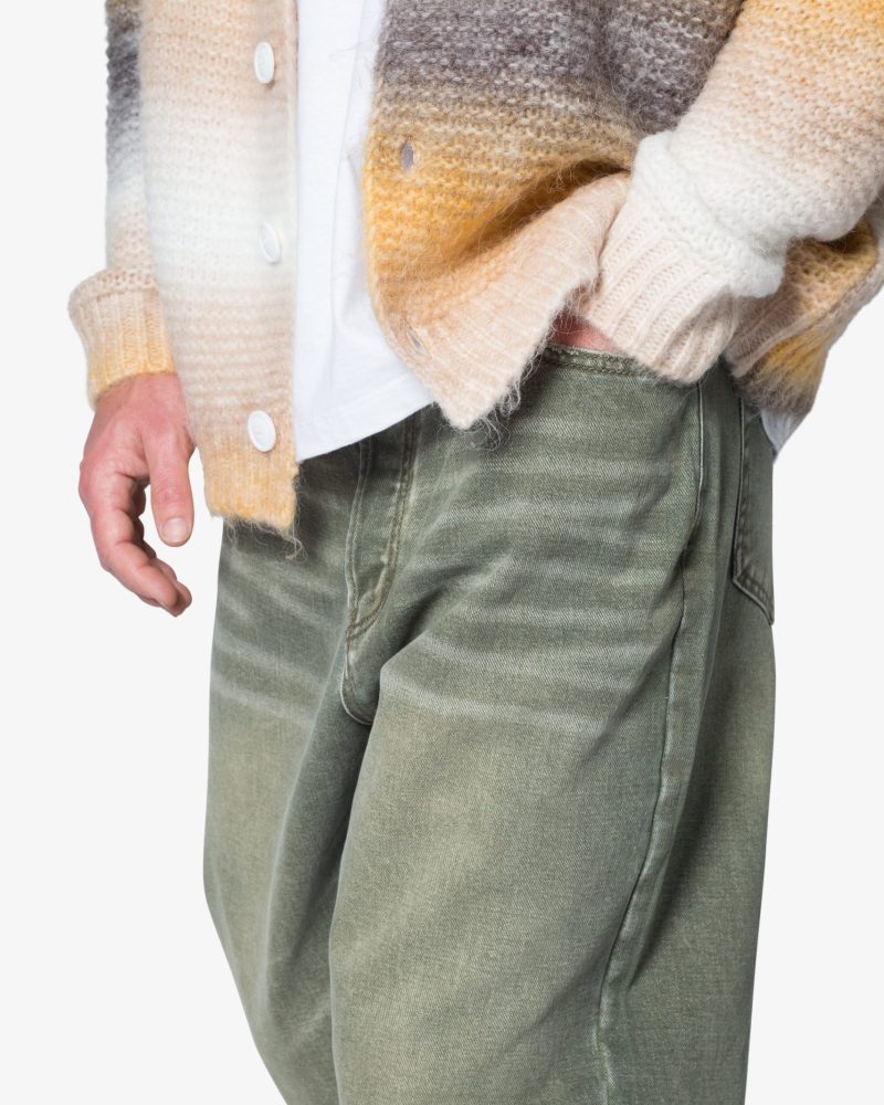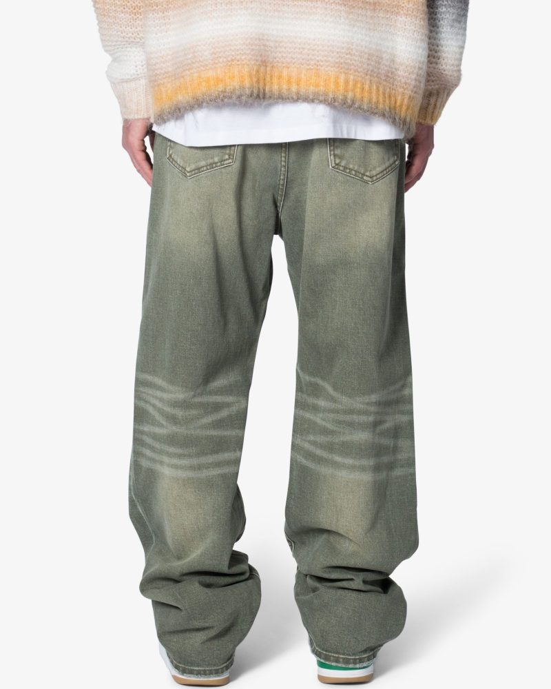 the Ultra Baggy Ground Moss Denim are designed with a new oversized ultra baggy fit. constructed from denim with a light wash with an green natural tint. featuring standard five pocket denim details. and finished with a button placket.