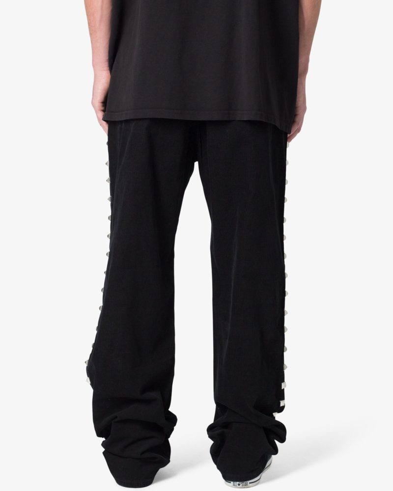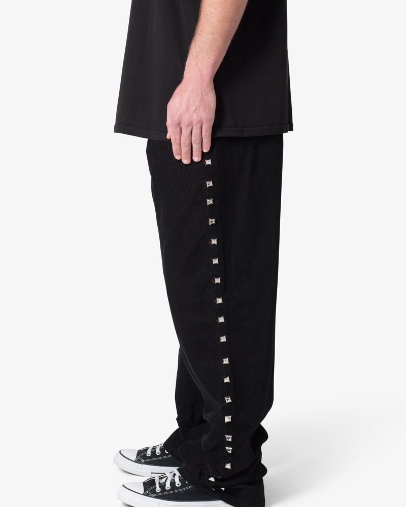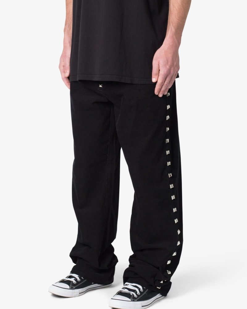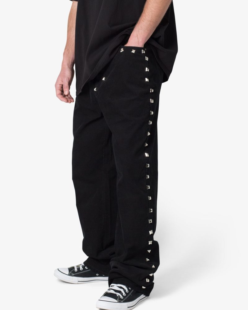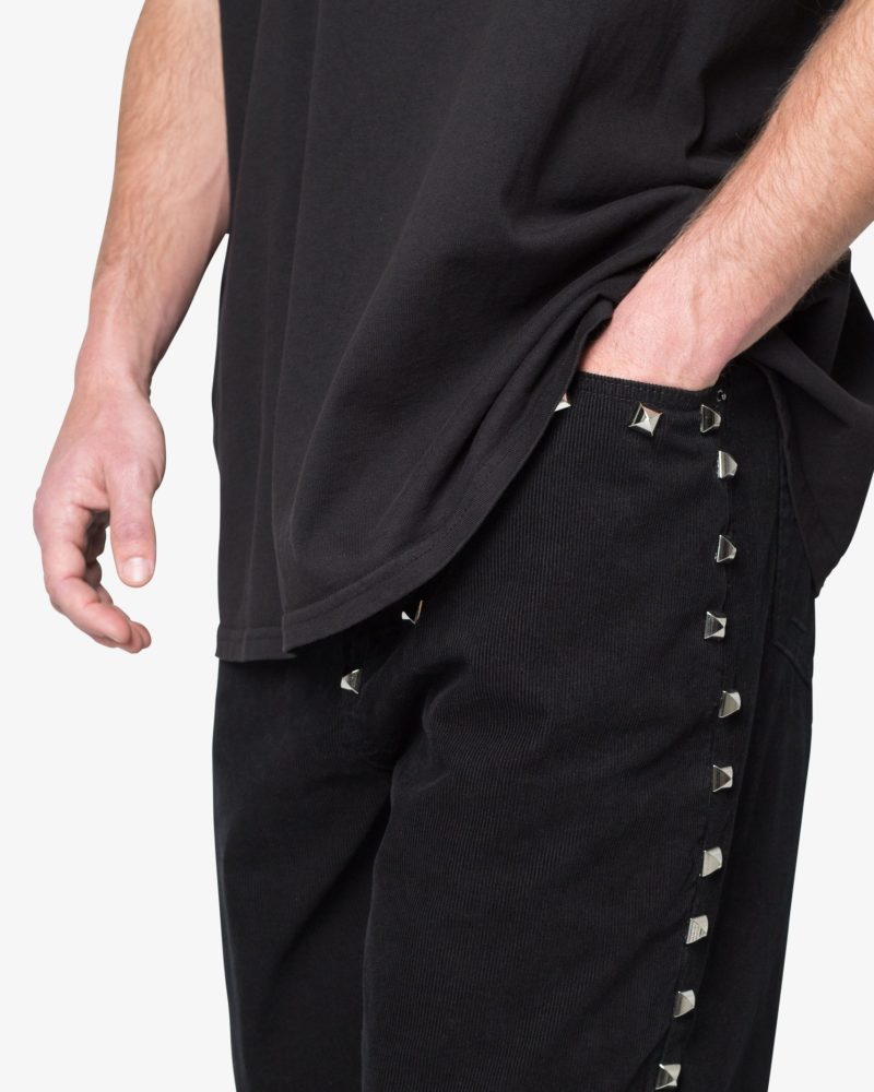 the Ultra Baggy Studded Corduroy Pants are designed with a new oversized ultra baggy fit. constructed from corduroy with a light rinse. studding details around the pockets and down the outseam. featuring standard five pocket denim details. and finished with a button placket.