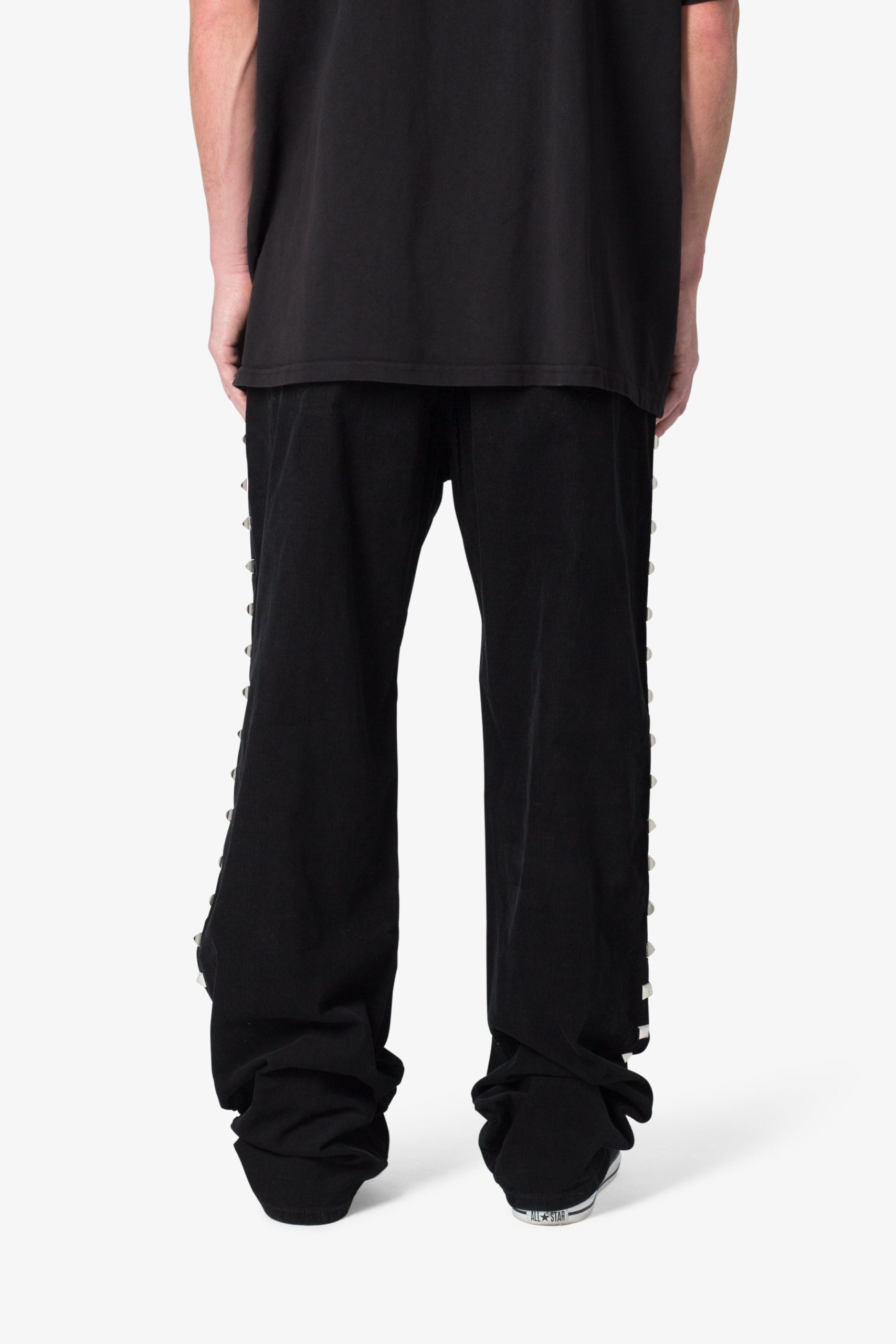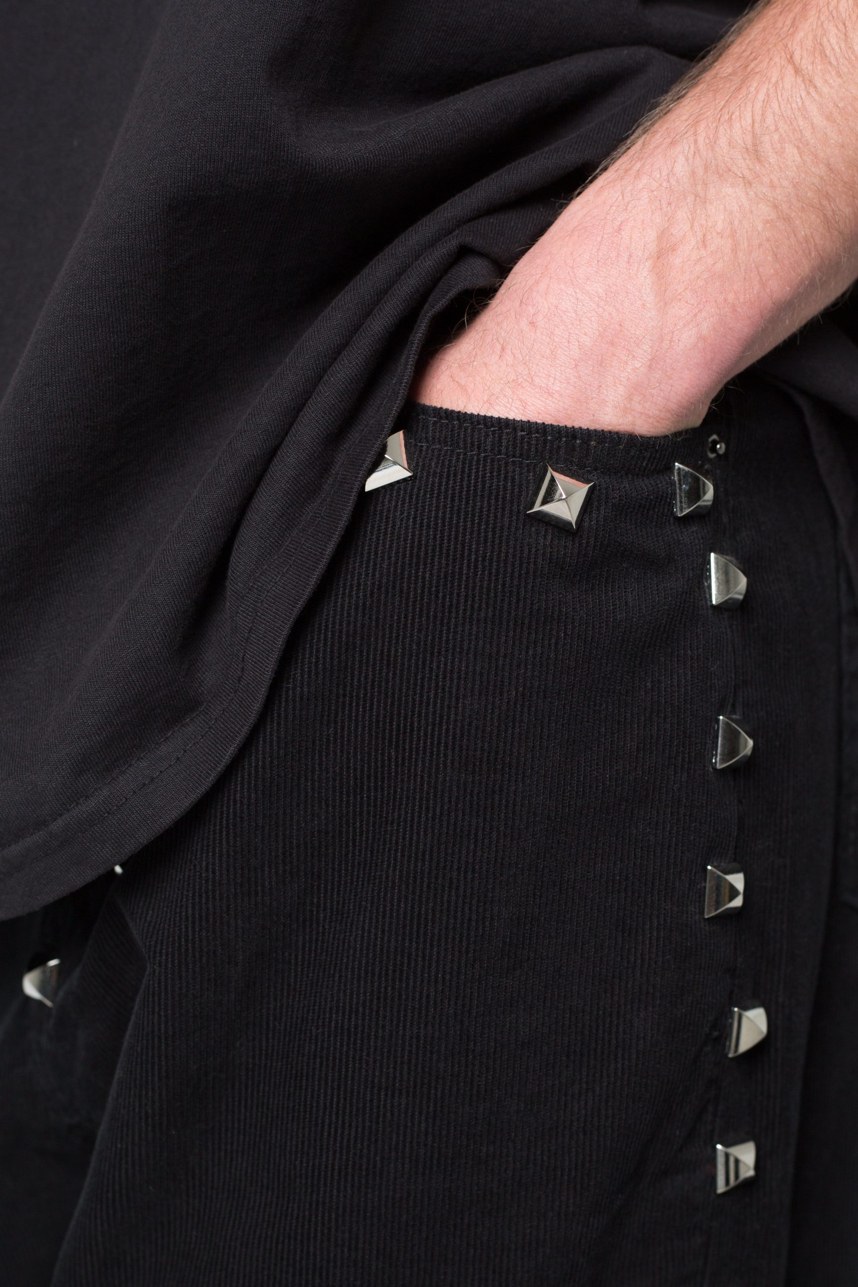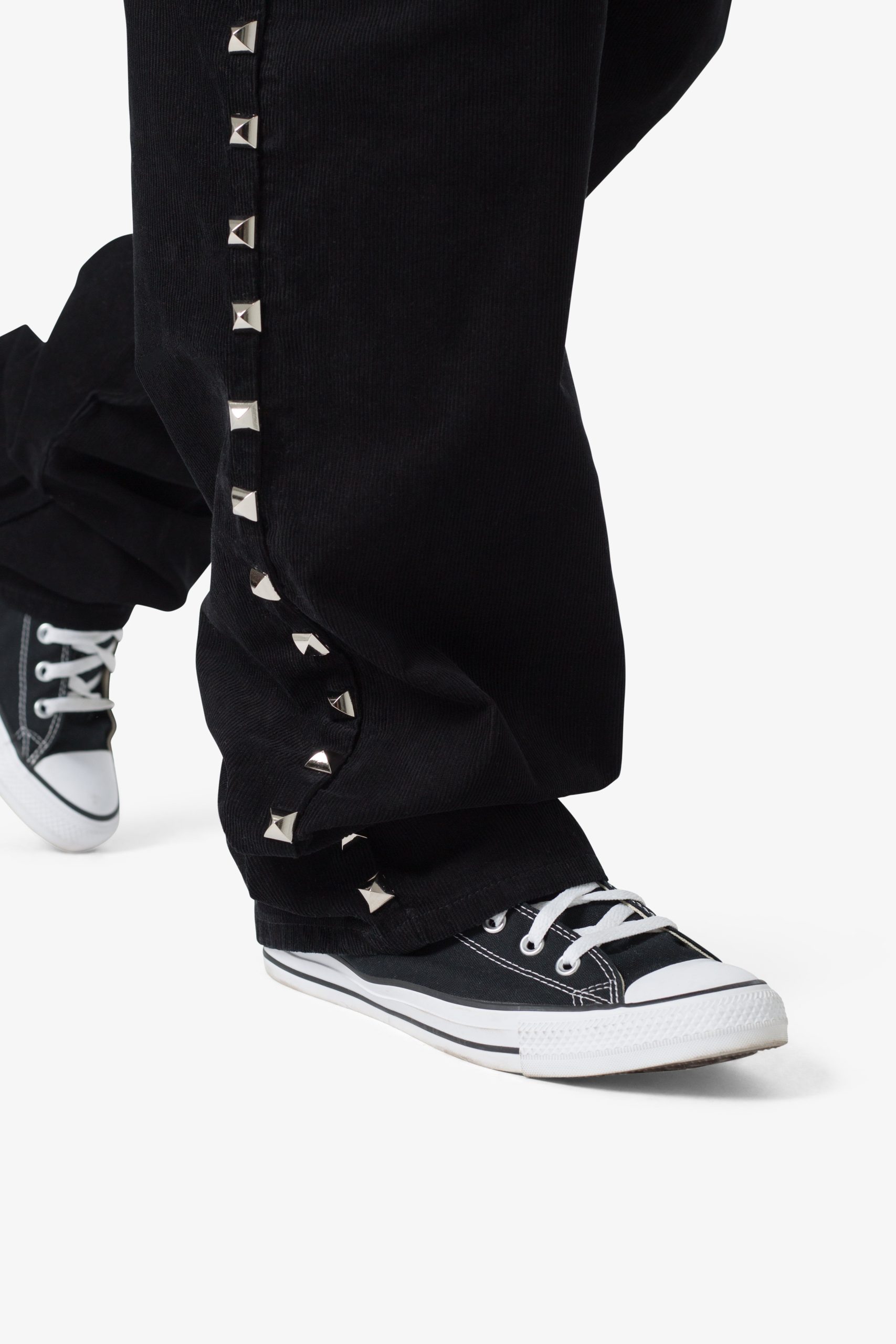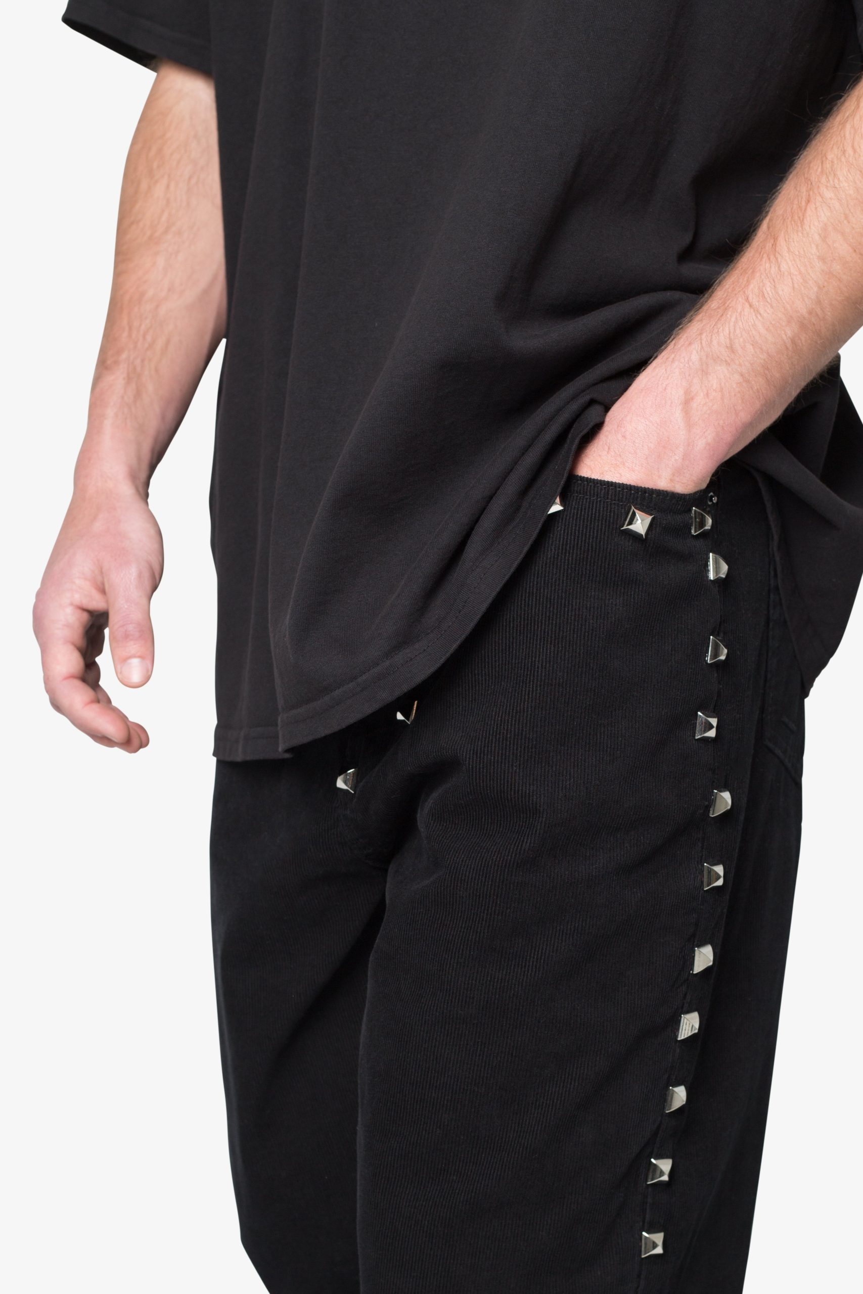 the Ultra Baggy Studded Corduroy Pants are designed with a new oversized ultra baggy fit. constructed from corduroy with a light rinse. studding details around the pockets and down the outseam. featuring standard five pocket denim details. and finished with a button placket.