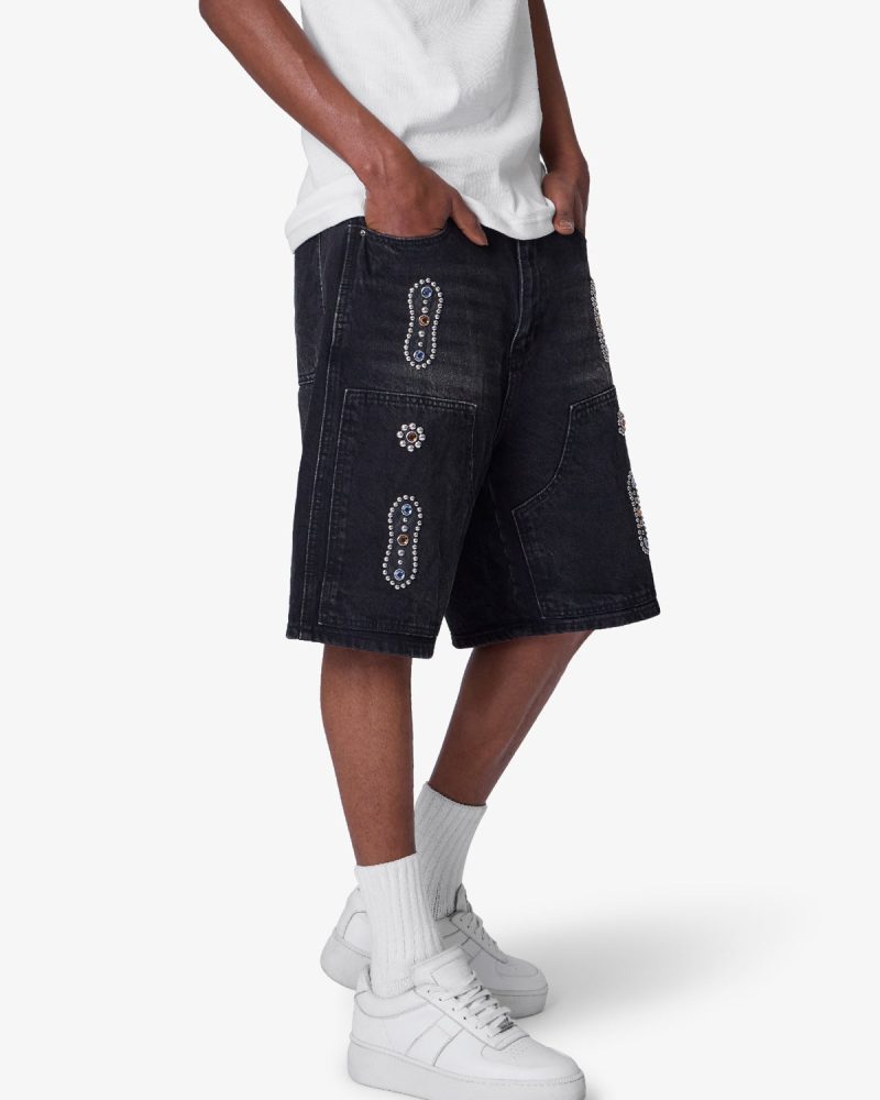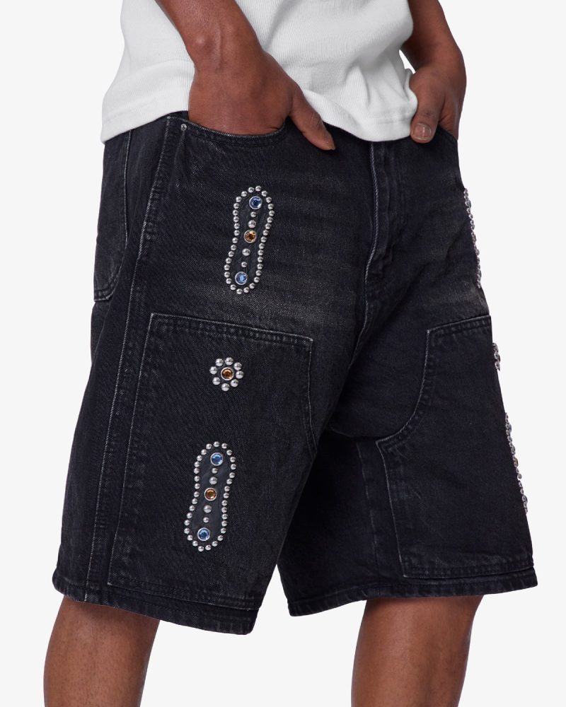 Western Jewel Denim Shorts – Washed Black