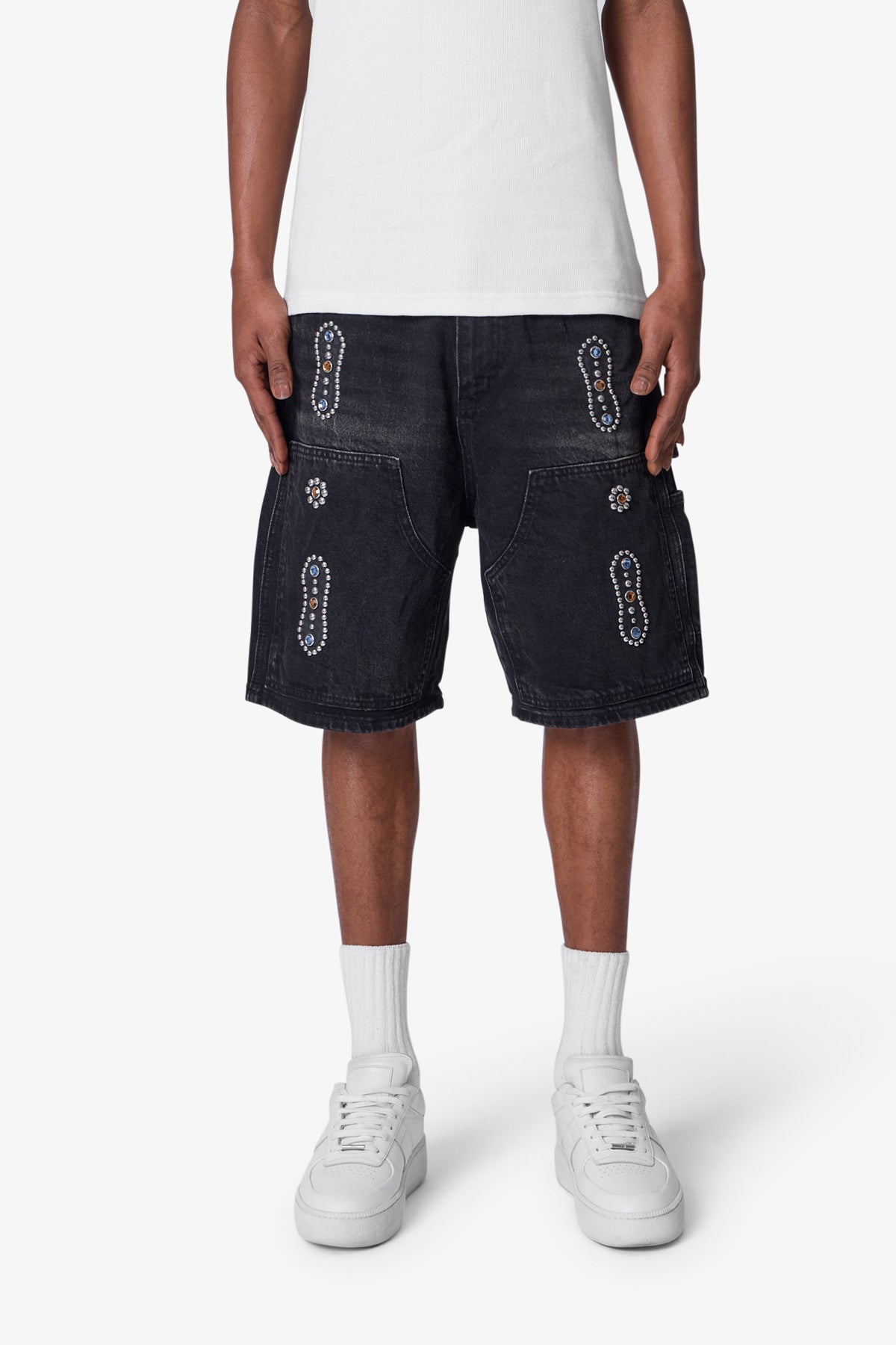 Western Jewel Denim Shorts - Washed Black
